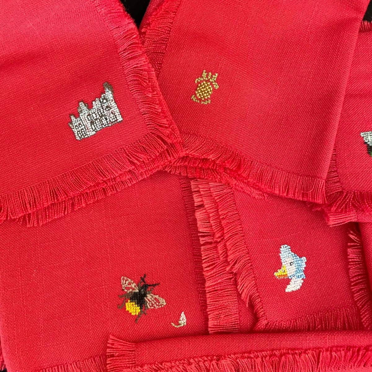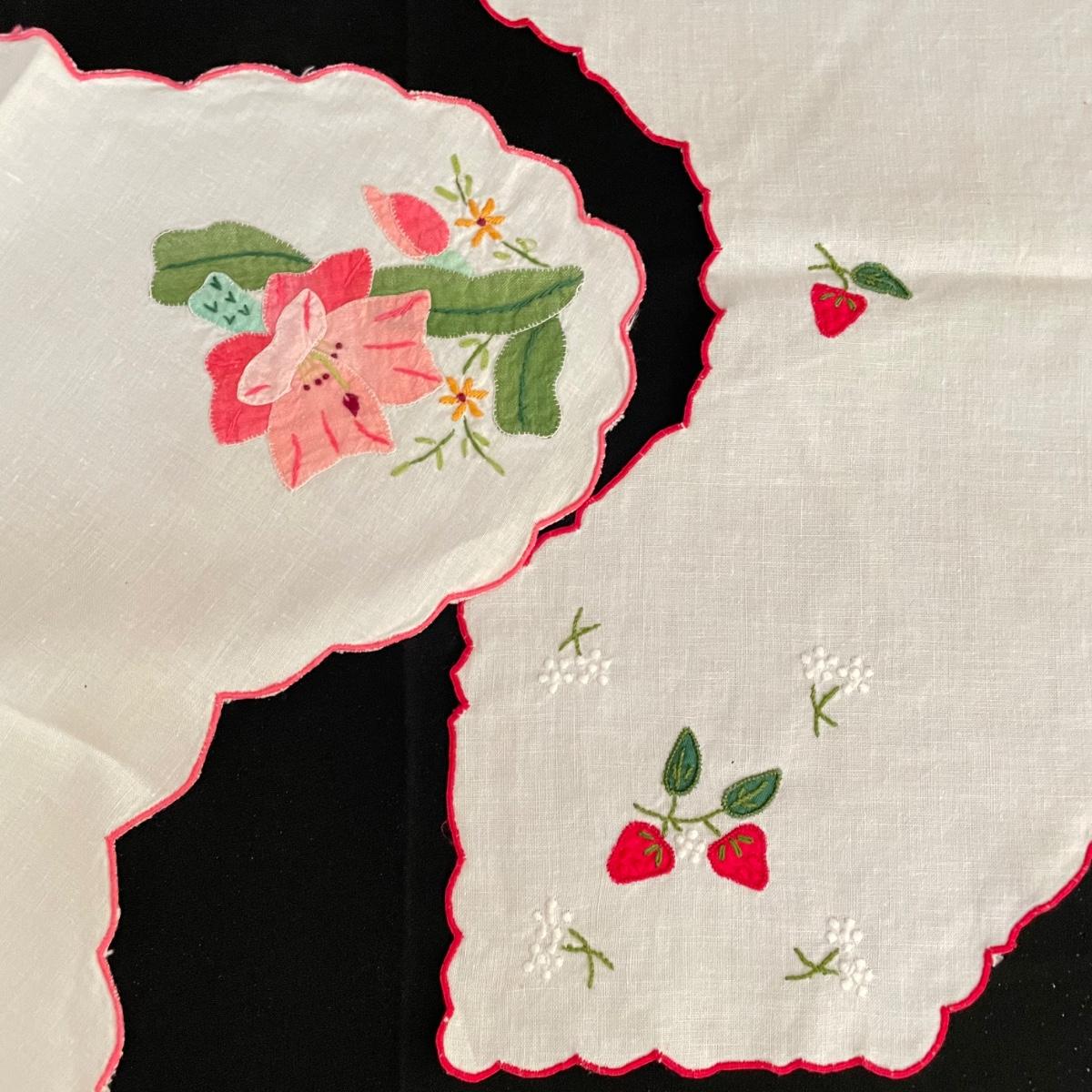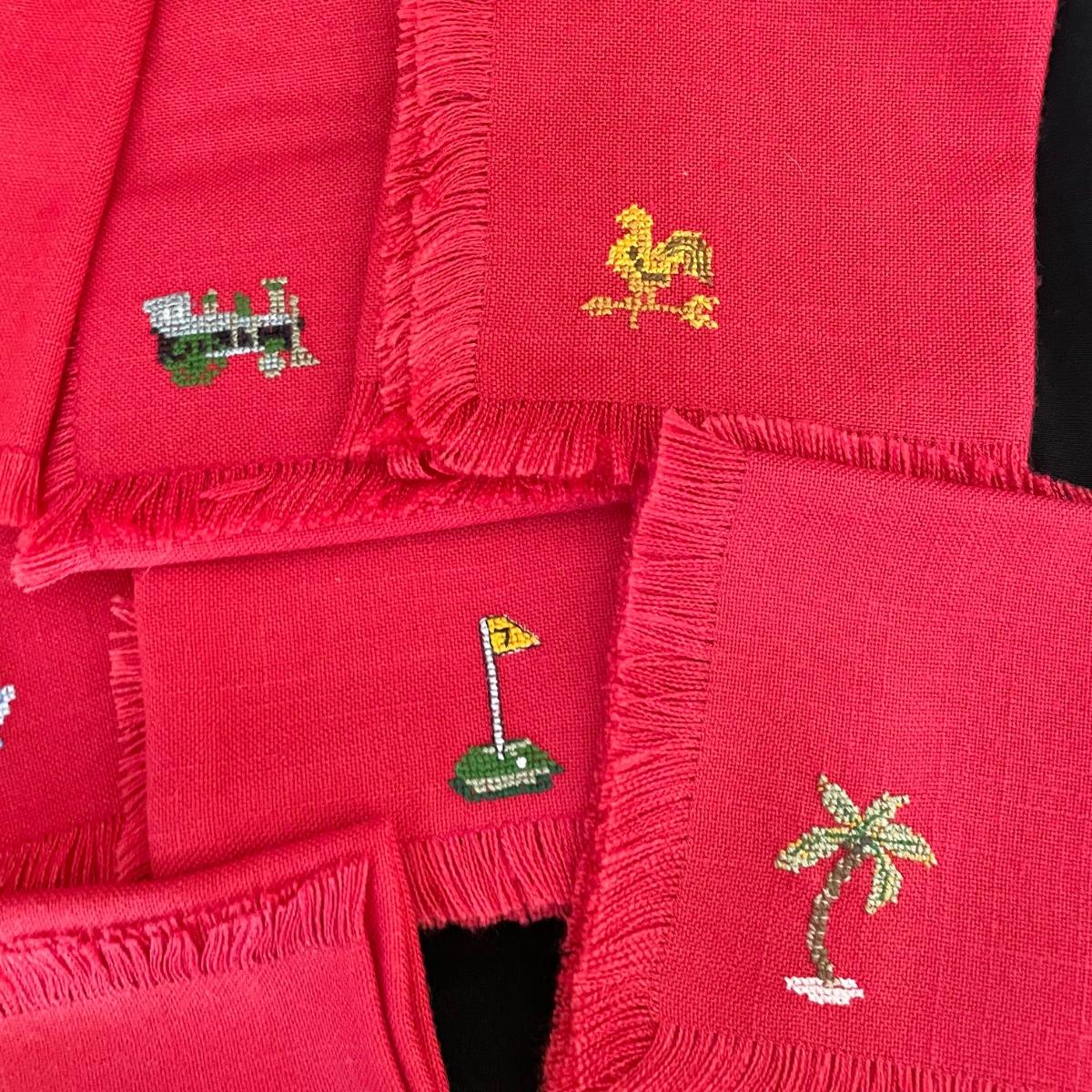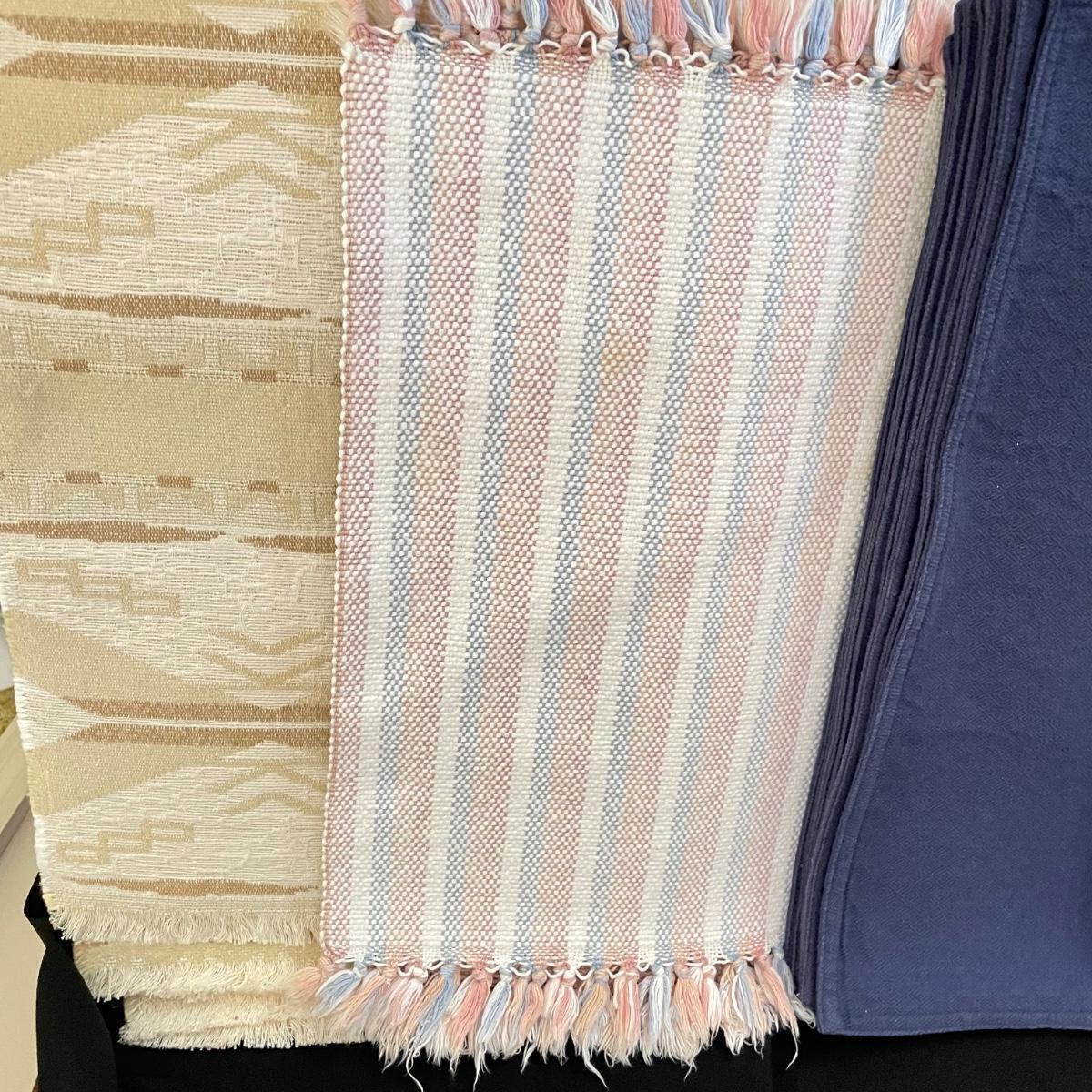 A well rounded collection of table cloths, cloth napkins, newer and vintage placemats and fine linen table decor. Some table cloths were photographed on a table measuring 54” x 21.5” x 29”. Table is not included in lot, but can be found by itself in another lot. The collection of red napkins have been hand embroidered and perfect for individual personalization at your next meal. A couple spots were found on the table cloths, they may come out with washing. The teal tablecloth also appears hand made and feels like cotton. See images. Shipping available.