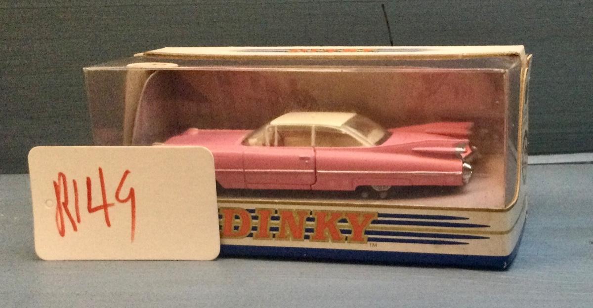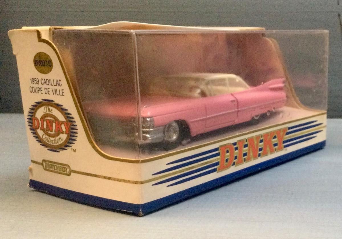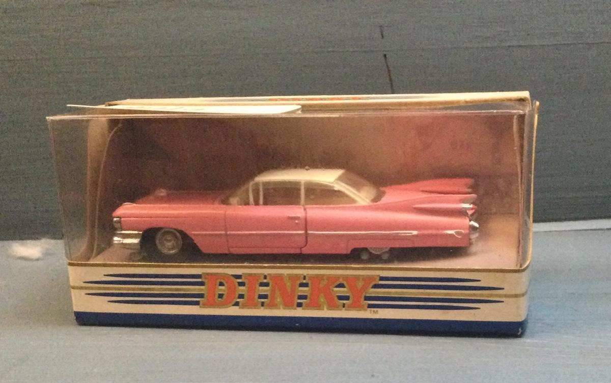 Dinky die cast car, pink, 1959 Cadillac coup de ville pink white top