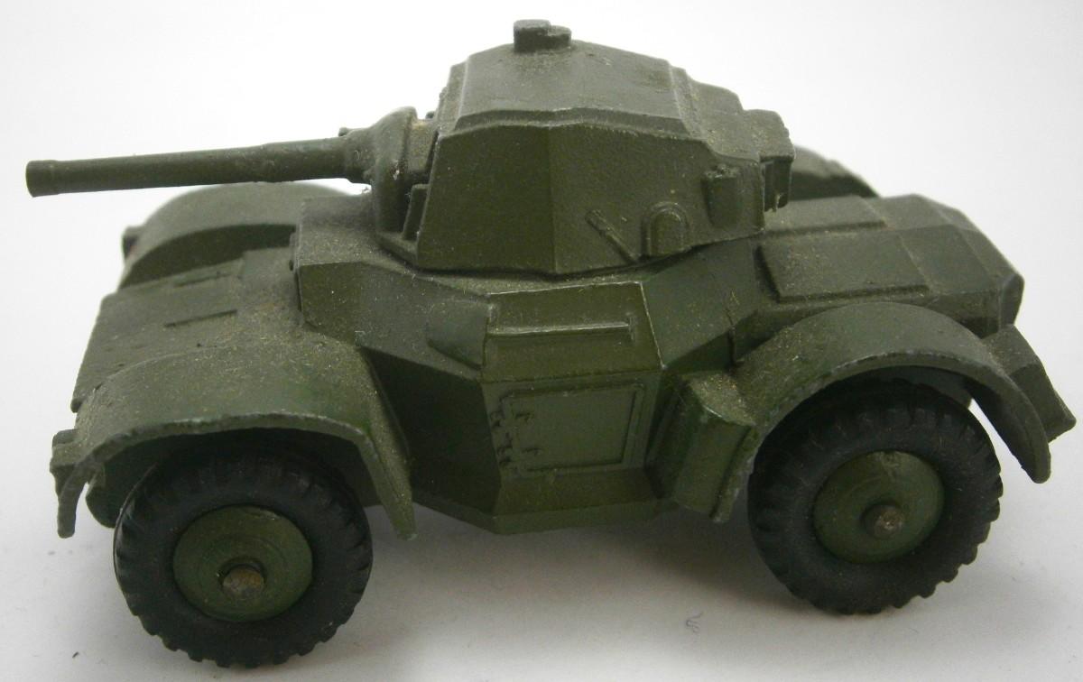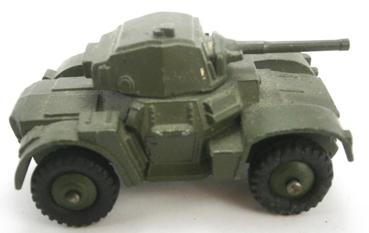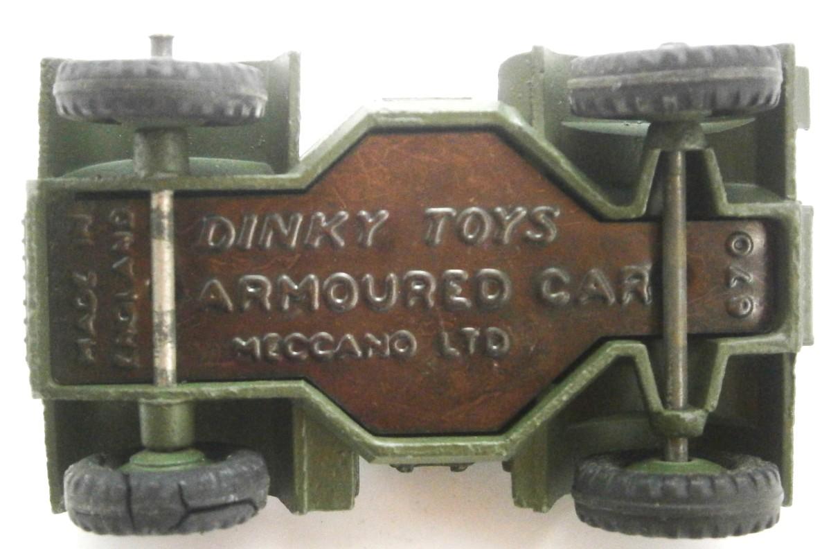 DINKY TOYS Armoured Car #670 made in England by Meddano Ltd, diecast metal, 2 3/4 in. long.