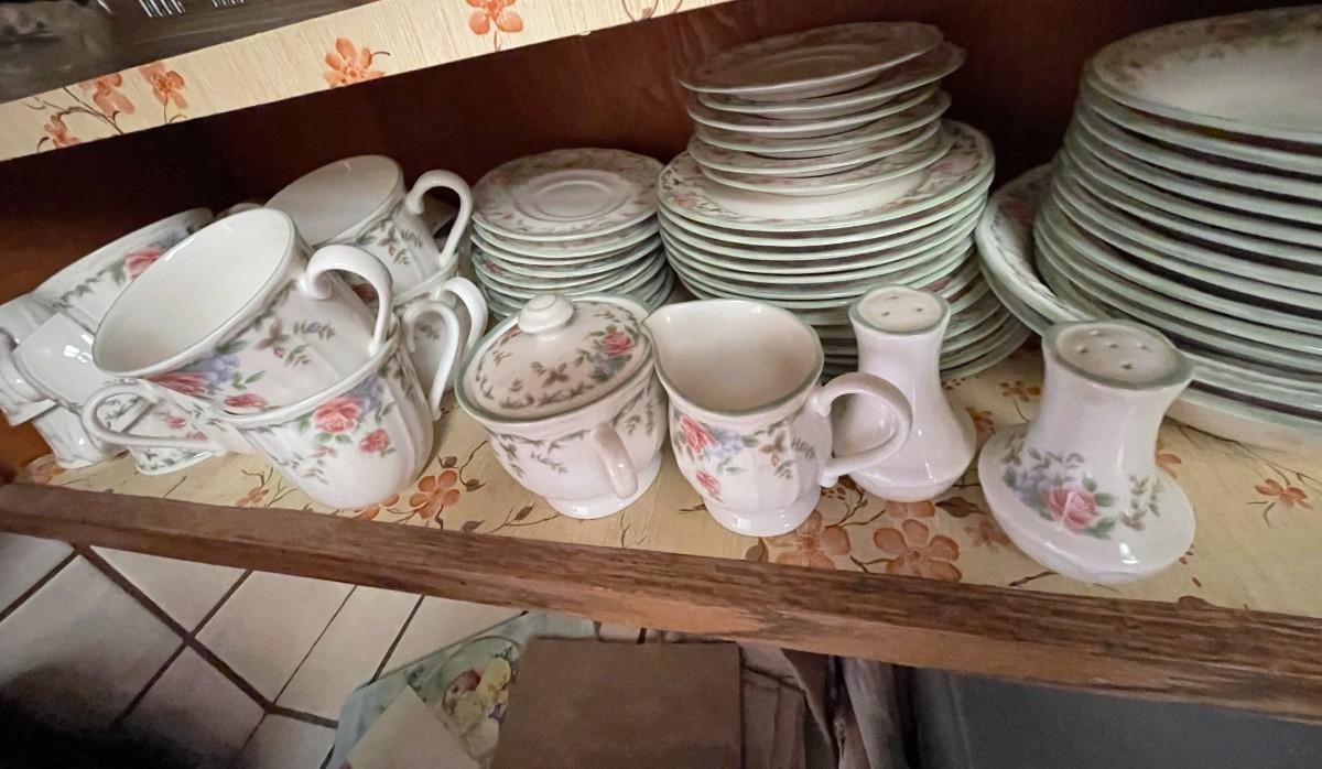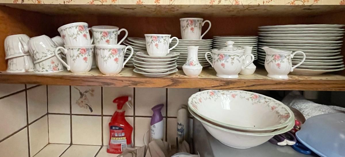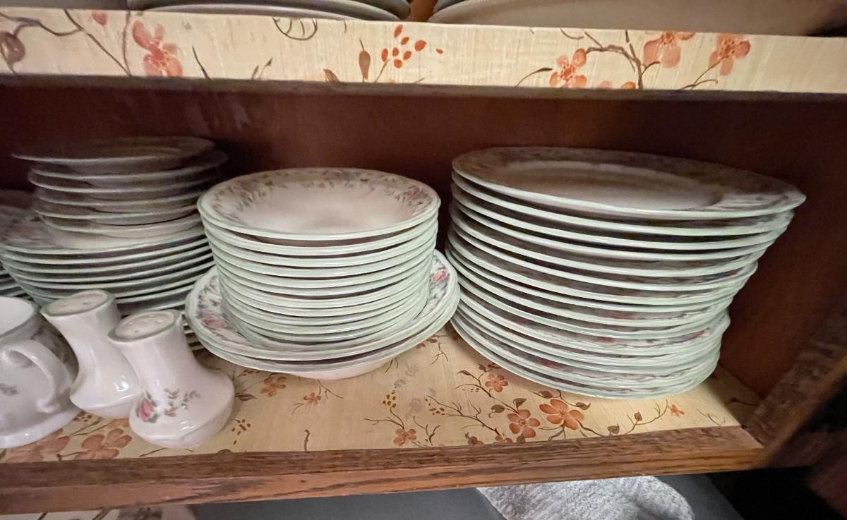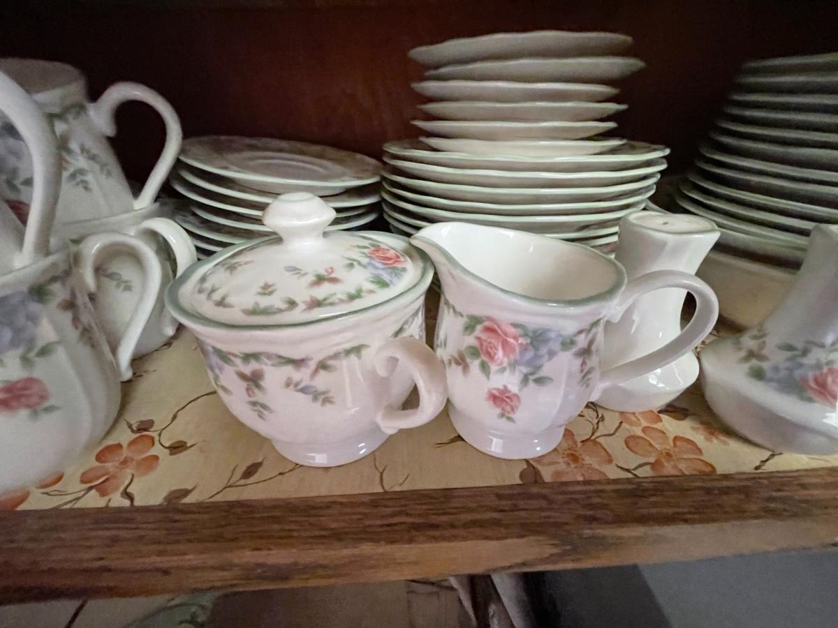 15 Dinner, 13 Salad, 12 Bowls, 16 Saucers, 15 Cups, and 6 Mugs PLUS 2 Serving Bowls, Cream, Sugar, and Salt & Pepper Shakers