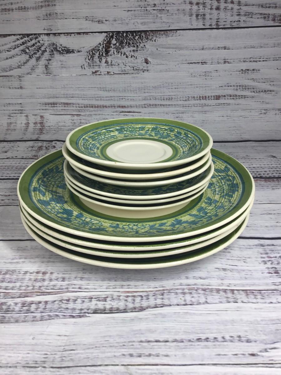Royal Ironstone Green Blue Grape & Flowers Dinnerware Plate Set