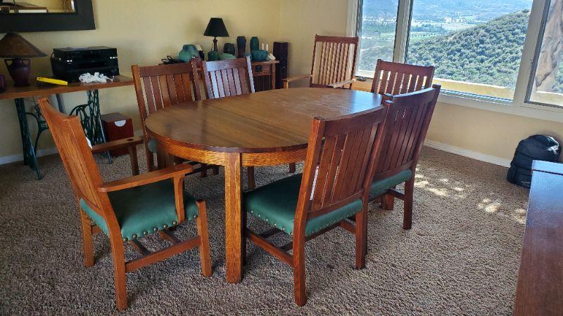 Dinning Set with 6 Wooden Chairs with Green Upholstery on wooden Chairs Table L 5' 10" x W 3' 10" x H 2' 6 1/8" Chairs L 1' 10" x W 1' 10" x H 3' 3"
