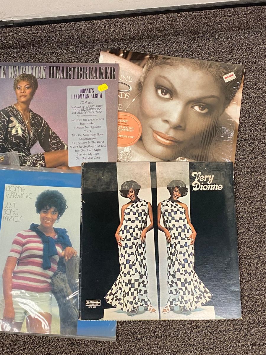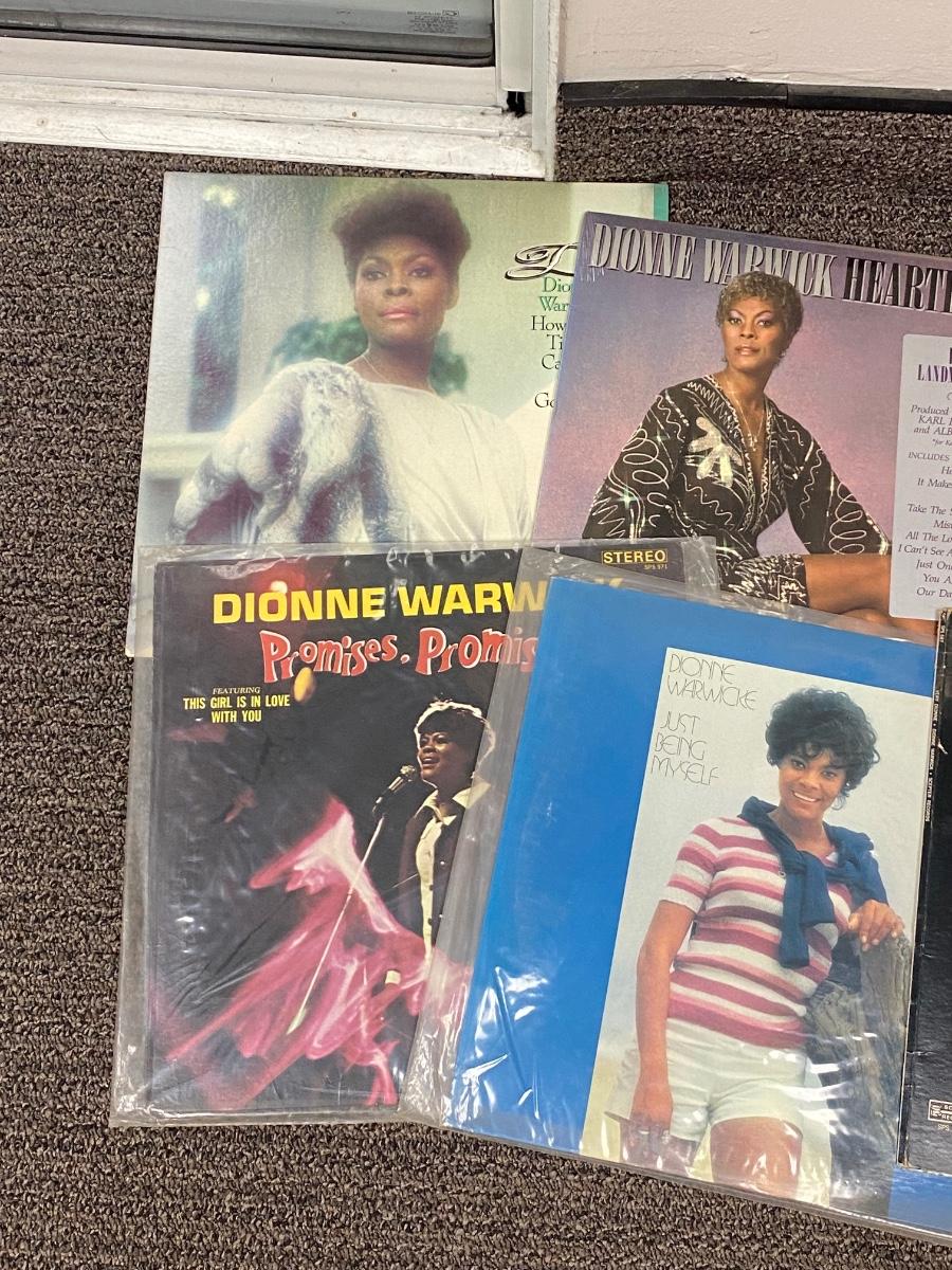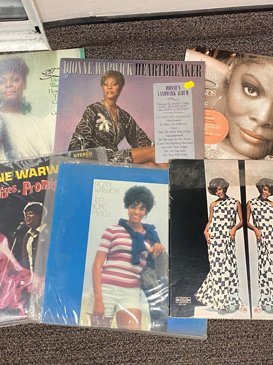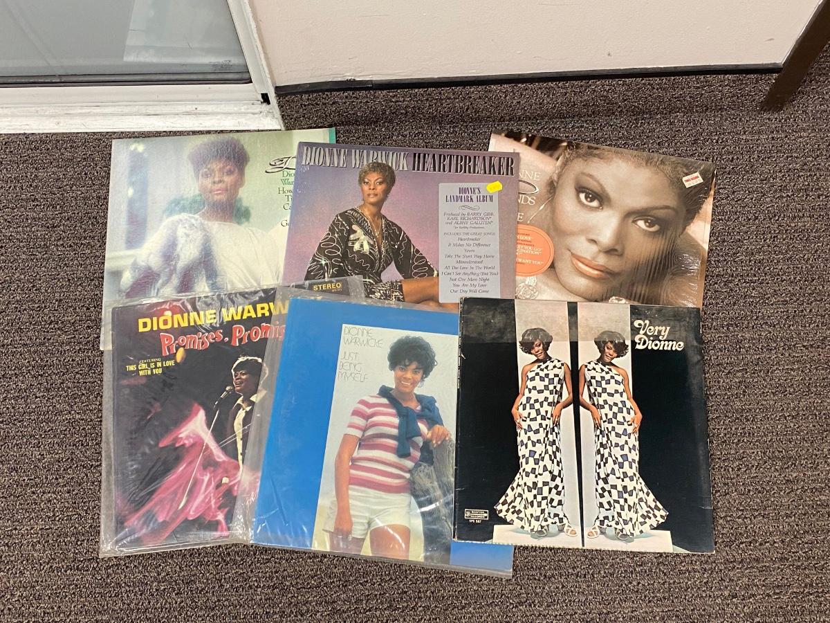 6 albums from Dionne Warwick. Untested. Look to cover many different years. Albums checked have light signs of use.