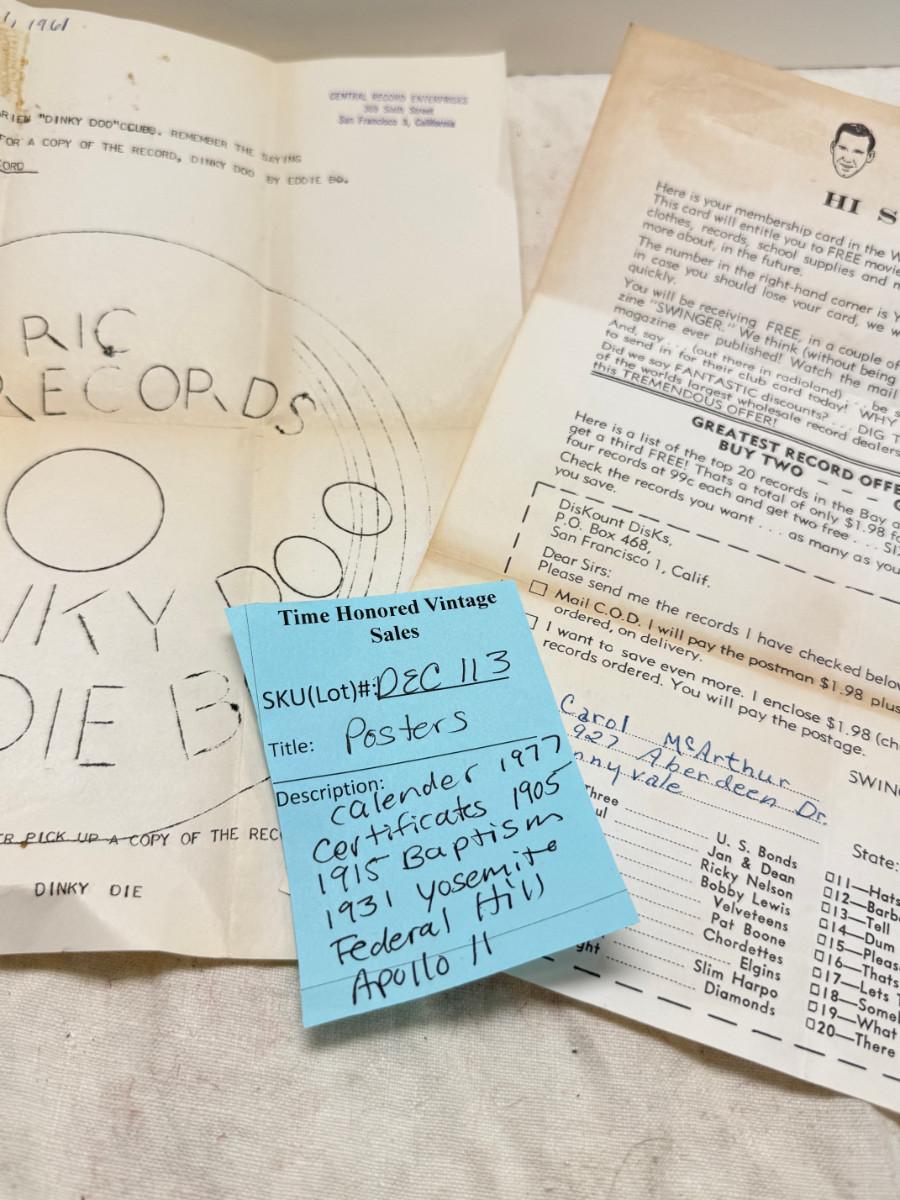 Pick-up days are held Saturday after auction ends, Pick up is at the physical store, Time Honored Vintage, is located at 2716 El Camino Real, In back alley, Moonlite Shopping center Santa Clara, California .