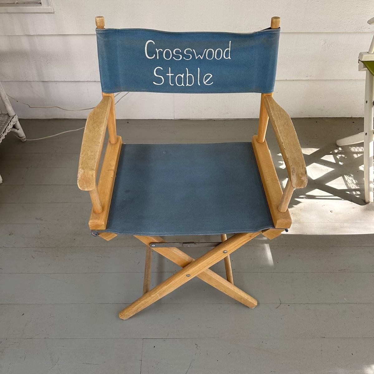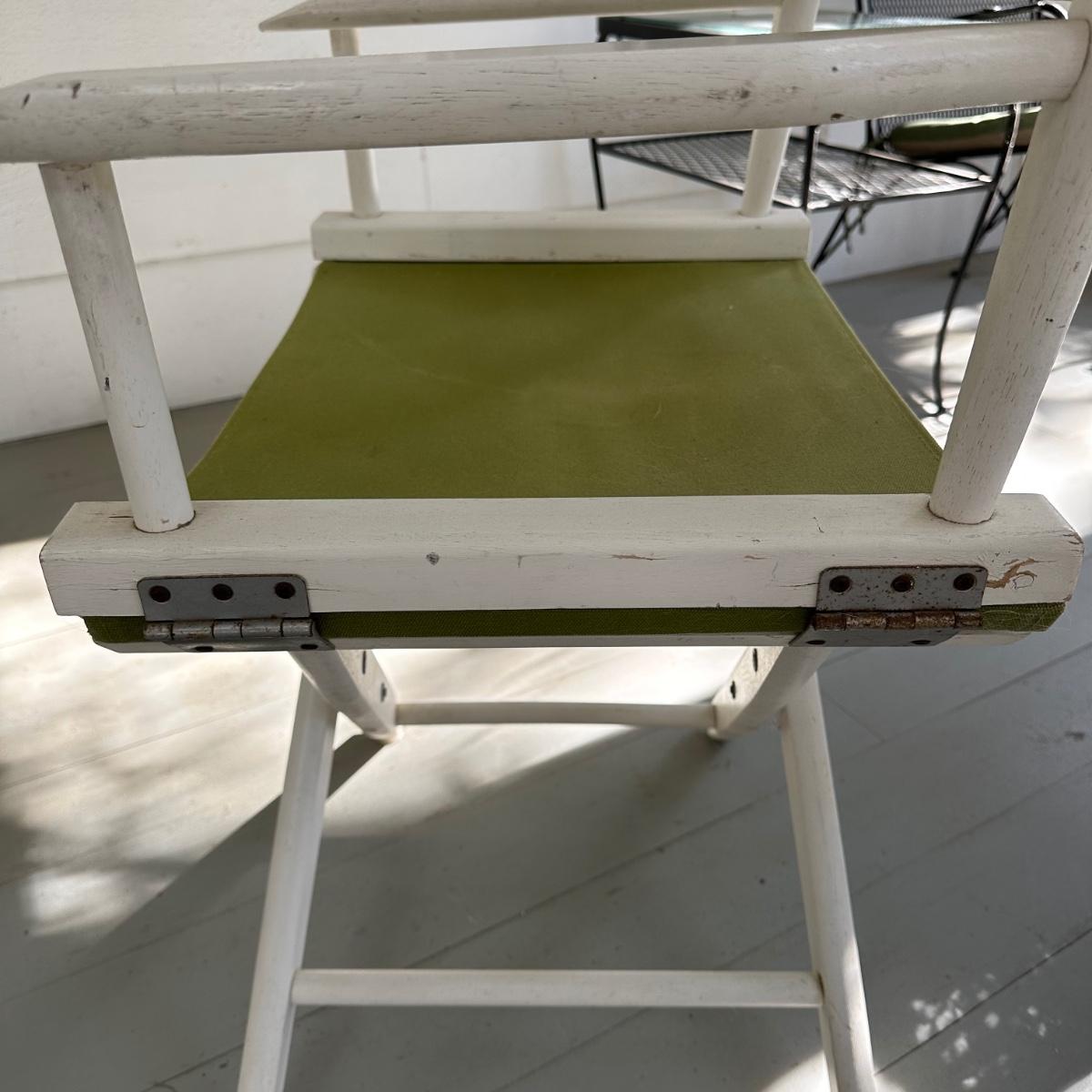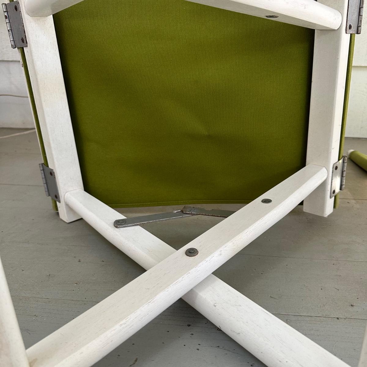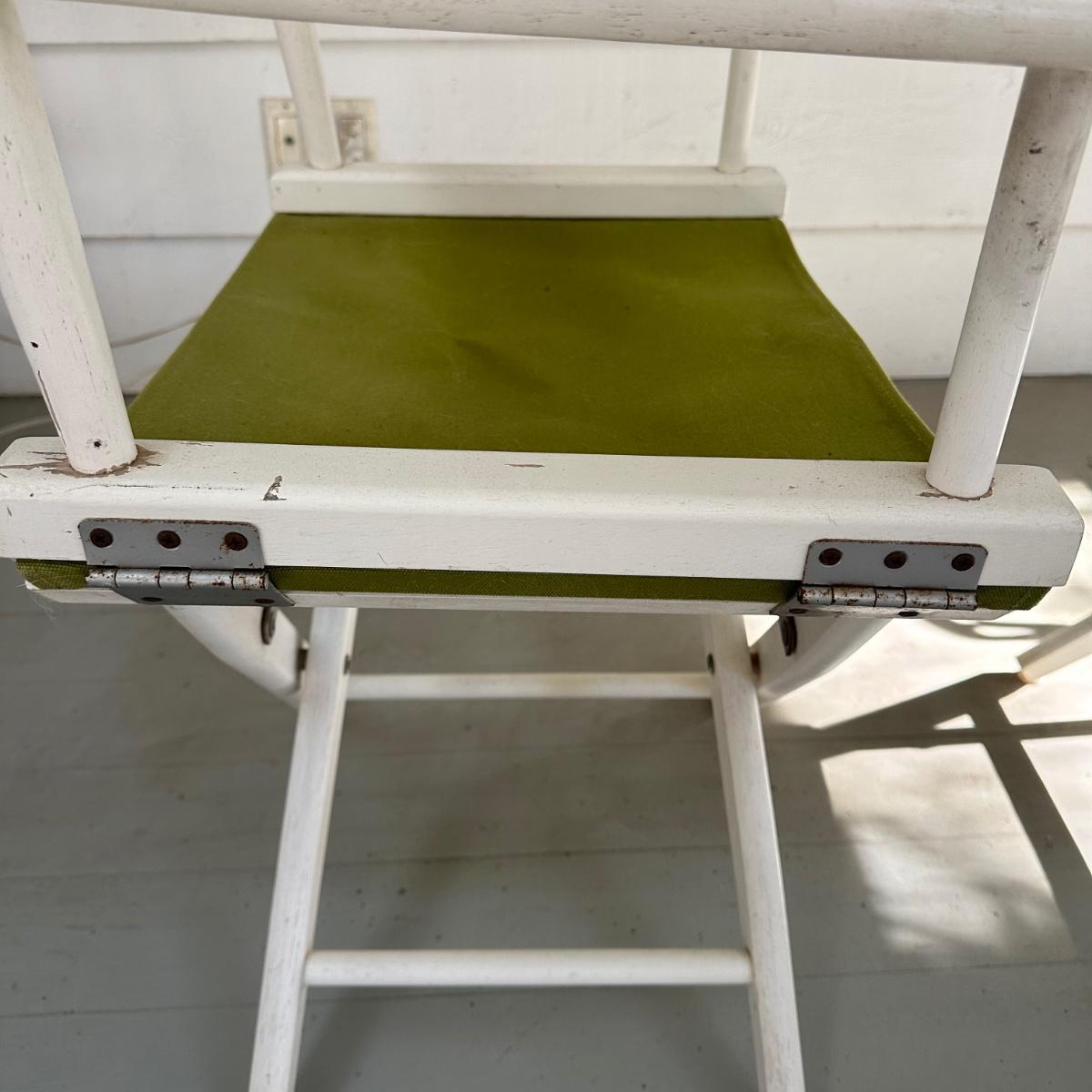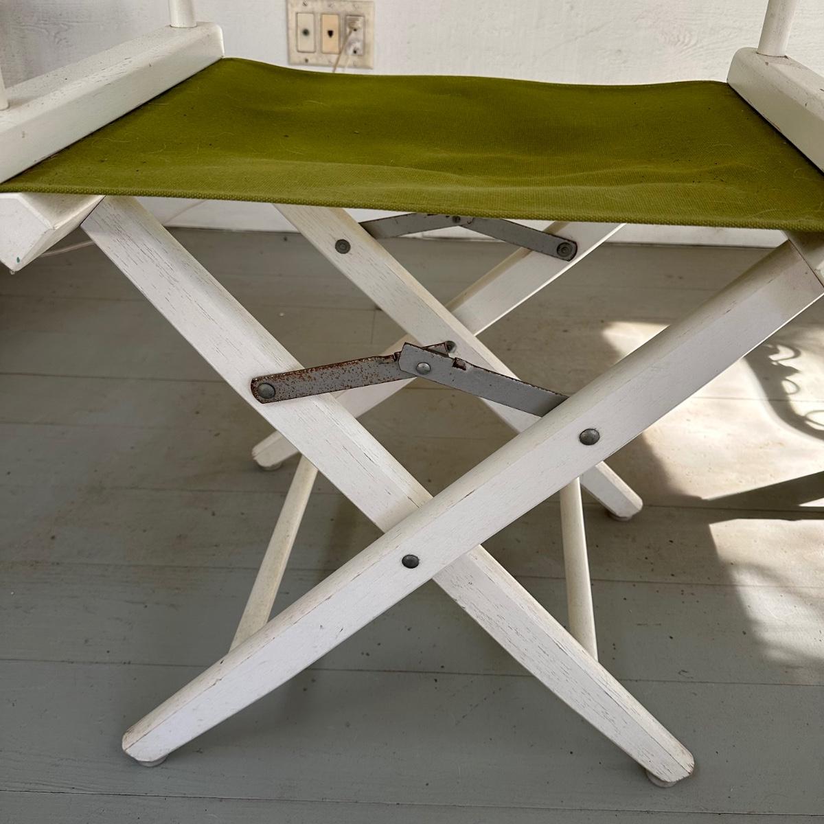 Three directors chairs with white frames that measure 22” x 16” x 34.5”H. Extra "Director's Chair Covers" are included. Local pickup only.