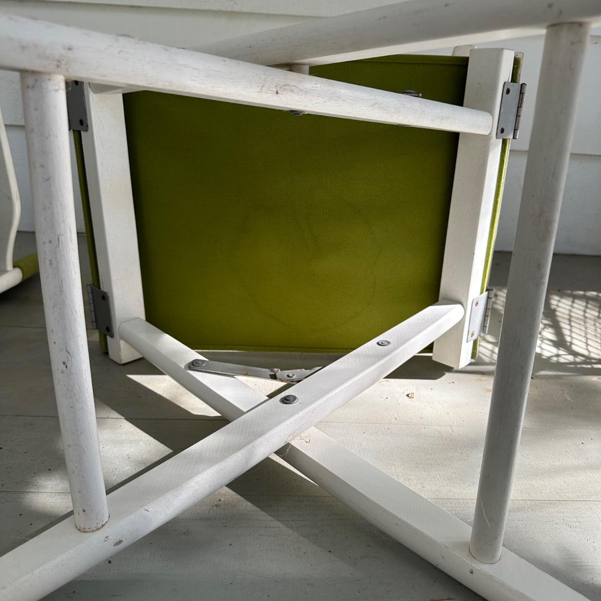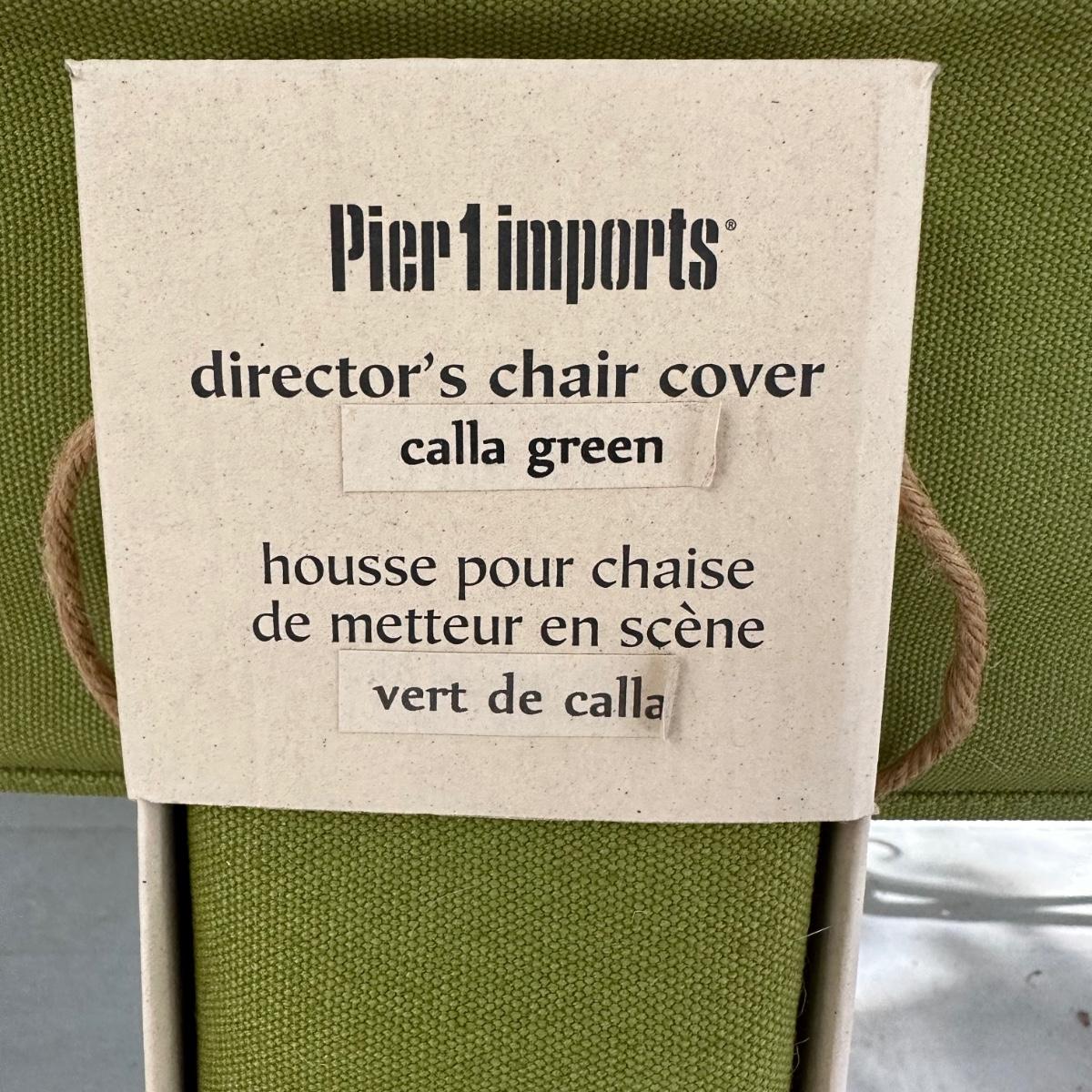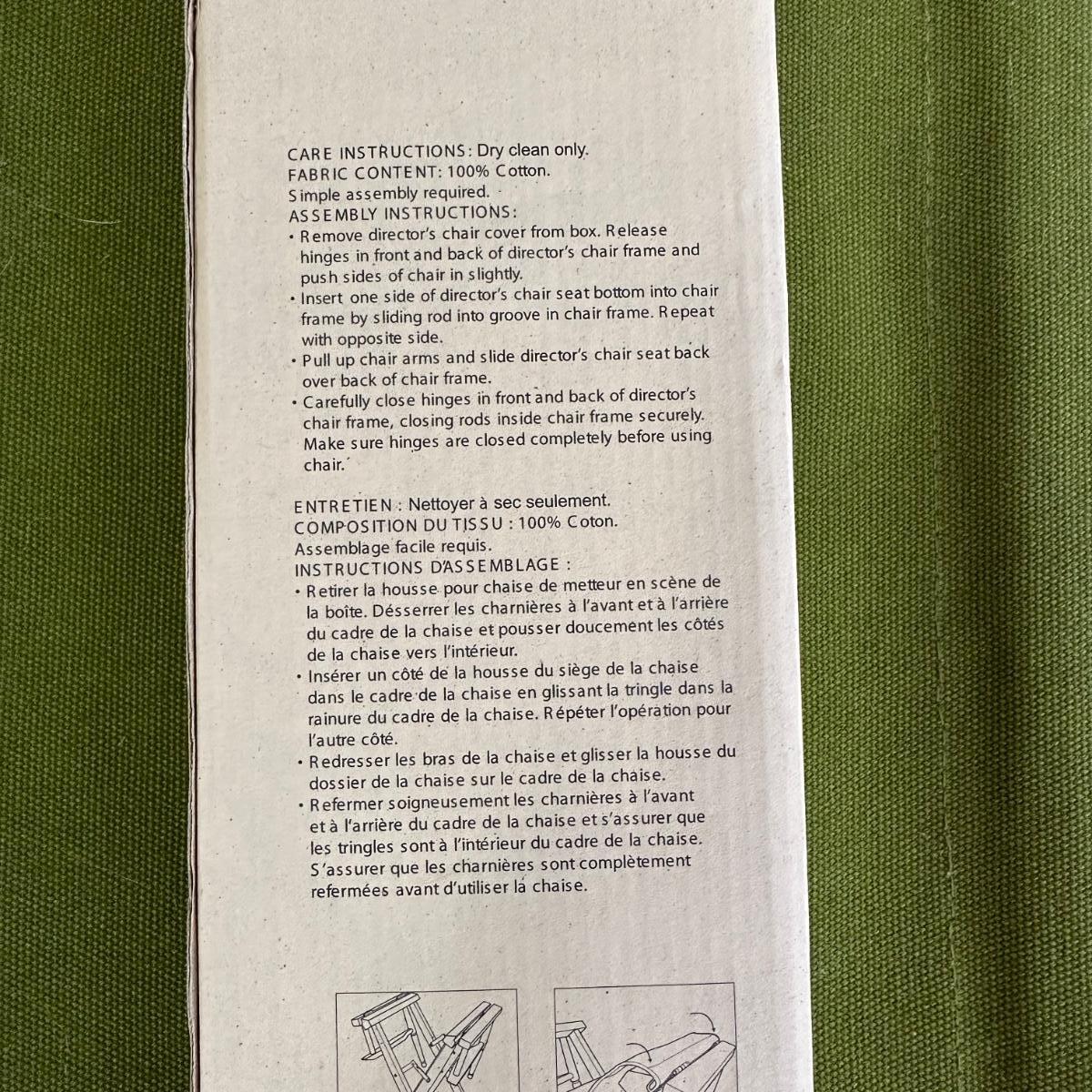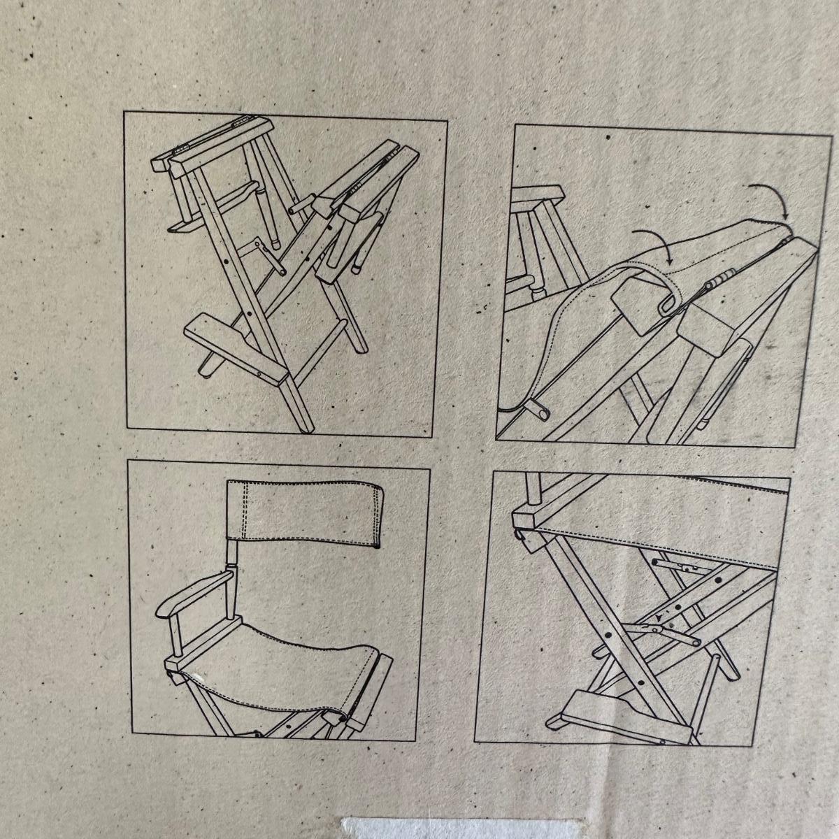 Three directors chairs with white frames that measure 22” x 16” x 34.5”H. Extra "Director's Chair Covers" are included. Local pickup only.