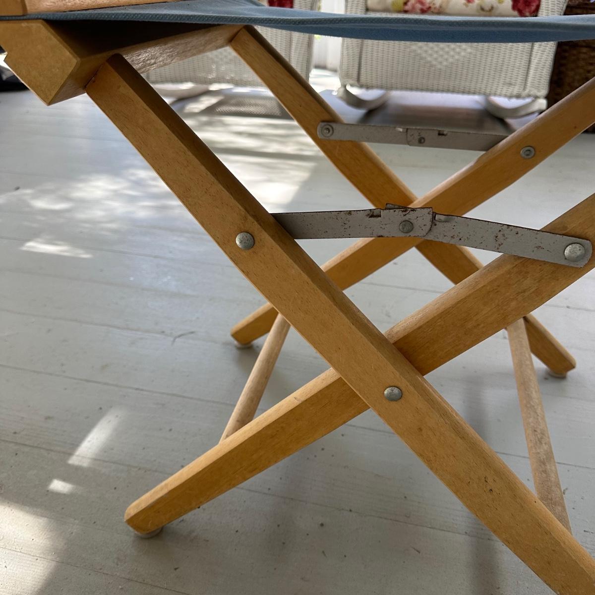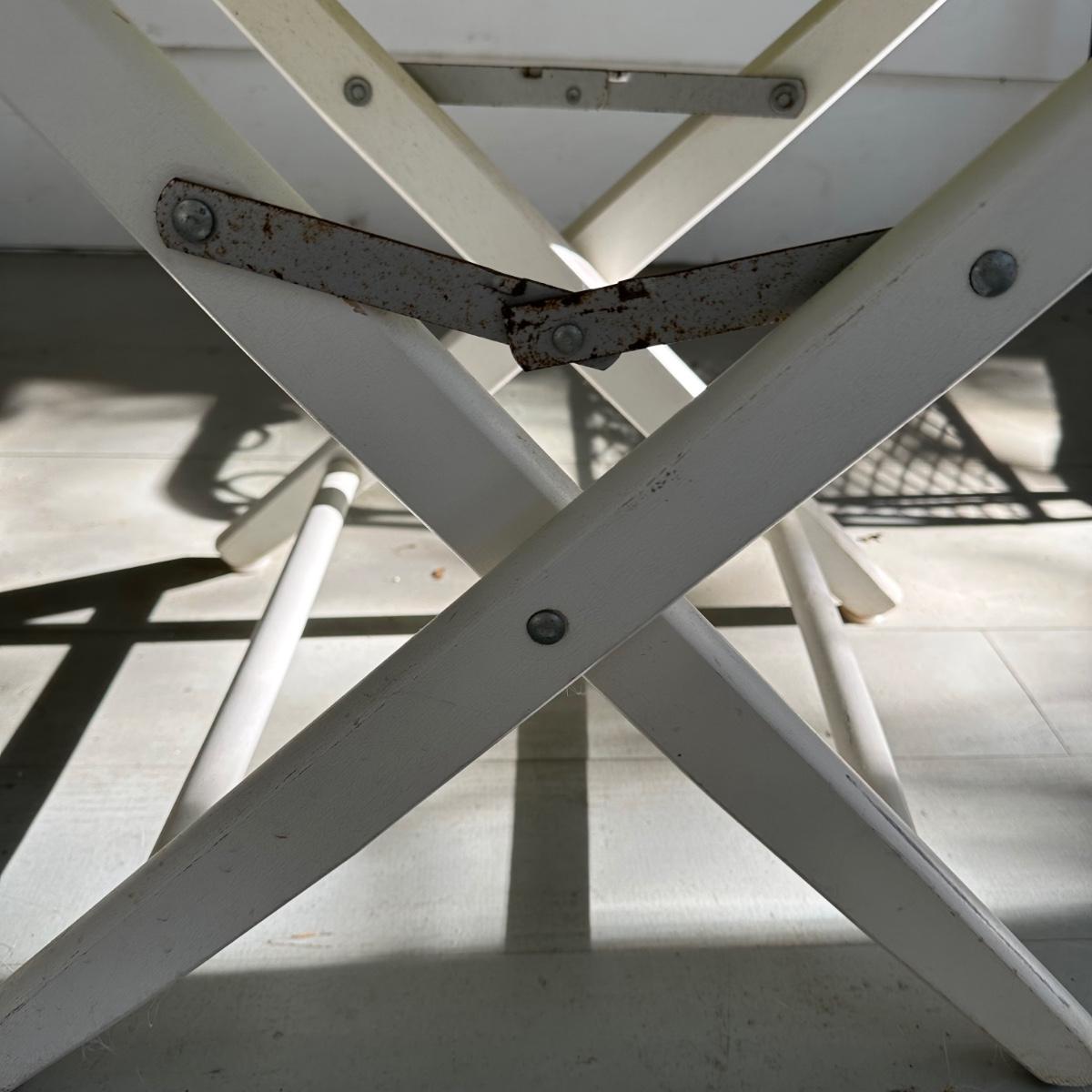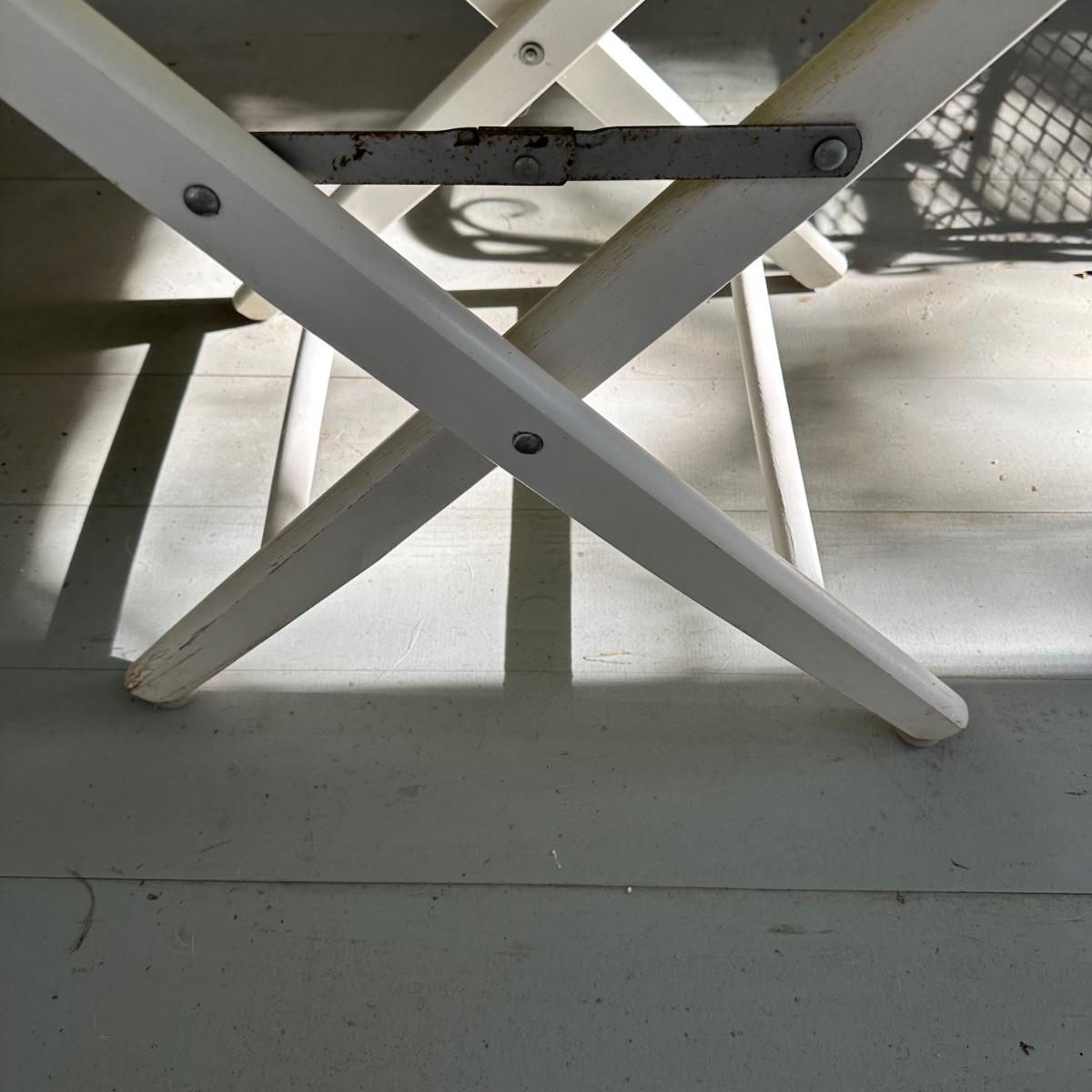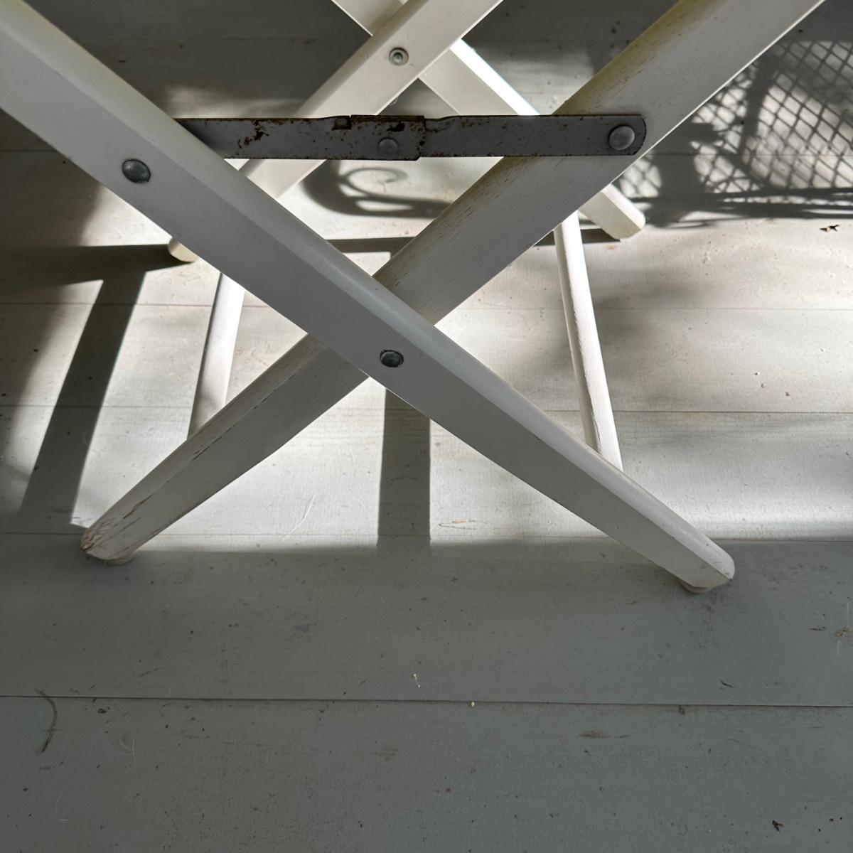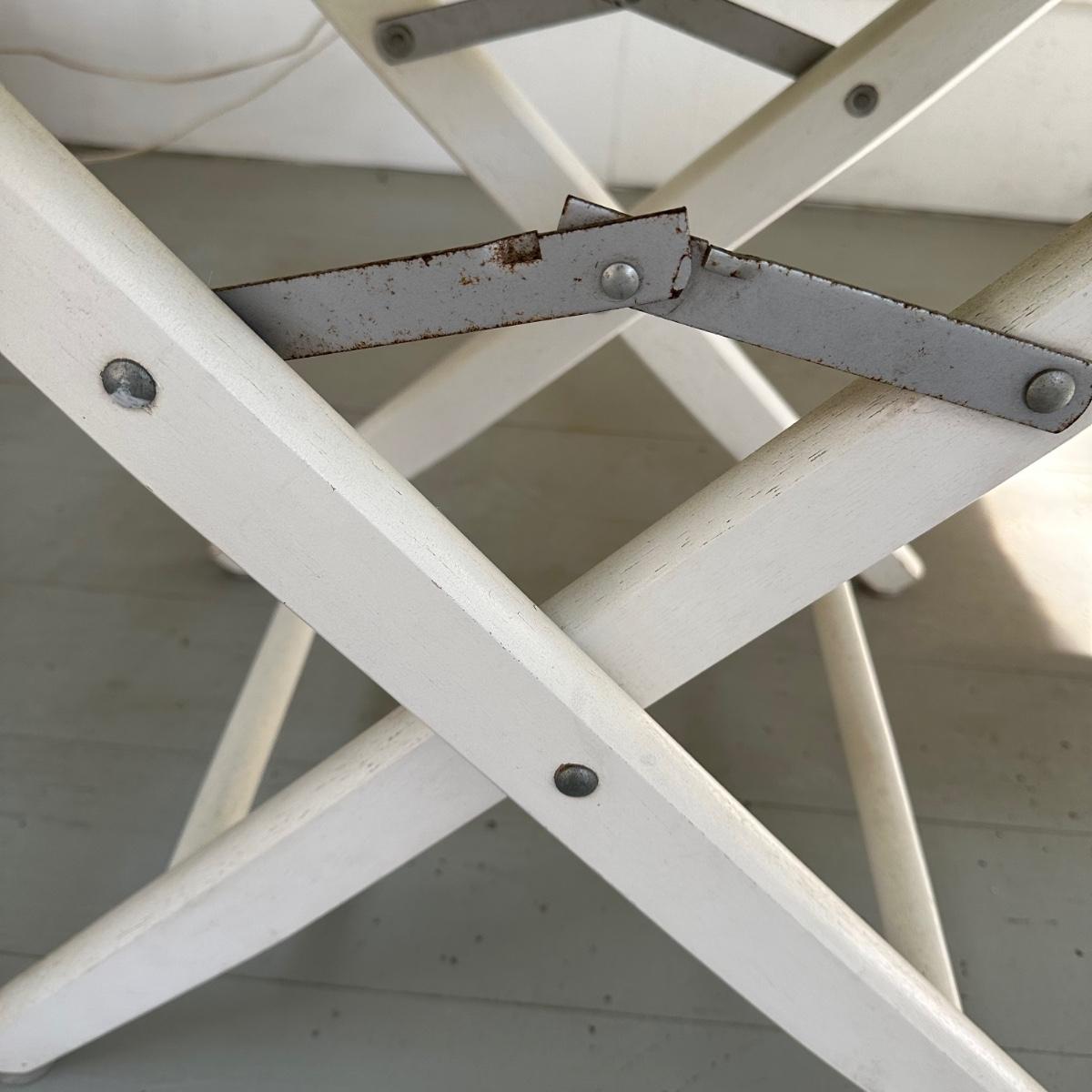 Three directors chairs with white frames that measure 22” x 16” x 34.5”H. Extra "Director's Chair Covers" are included. Local pickup only.