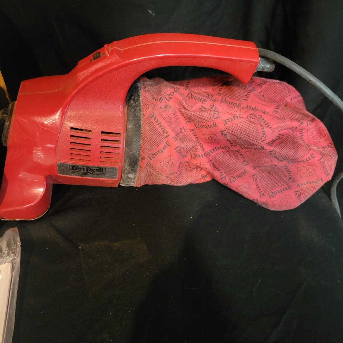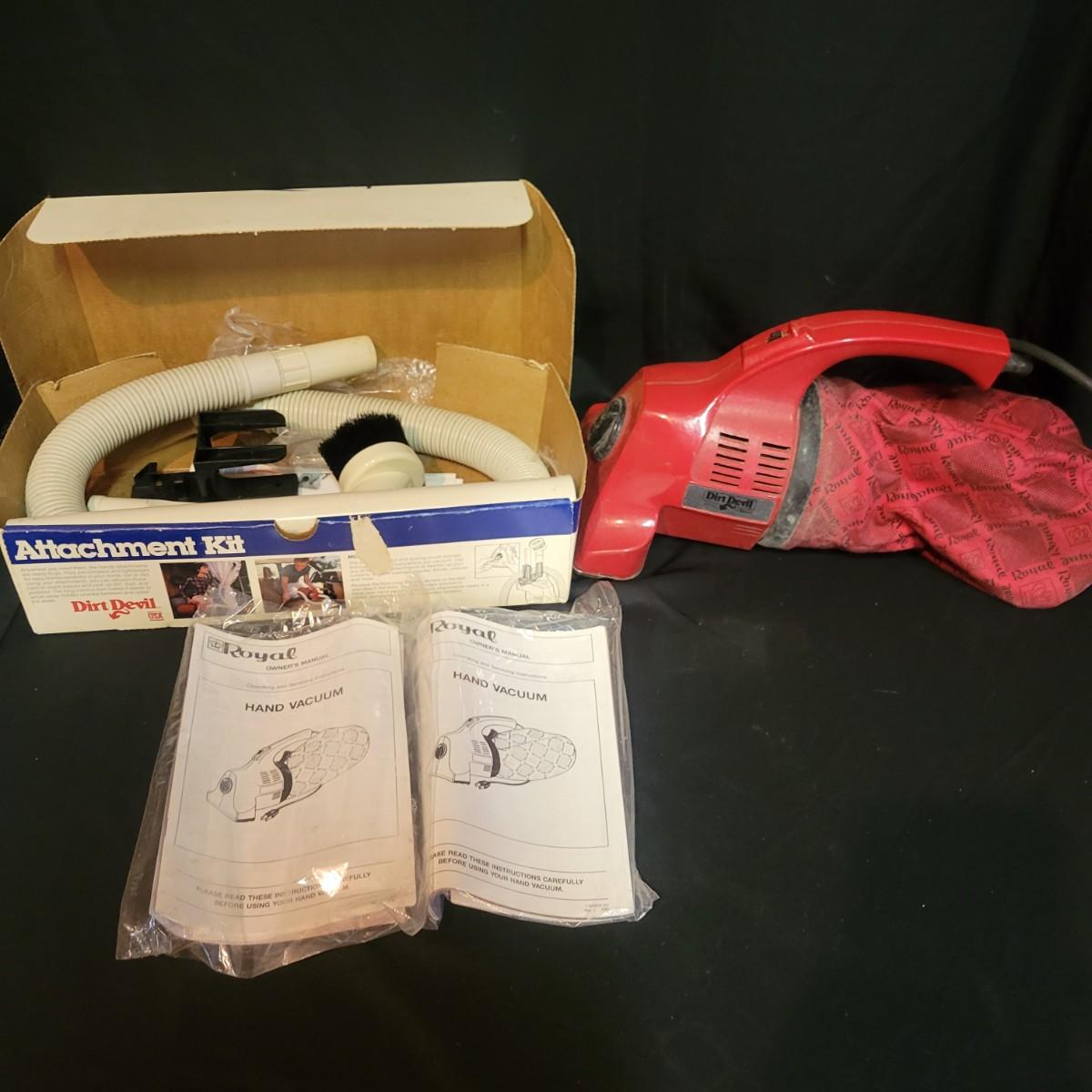 A Dirt Devil hand vacuum that powered on when plugged in. Also includes an assortment of accessories. Local pickup only