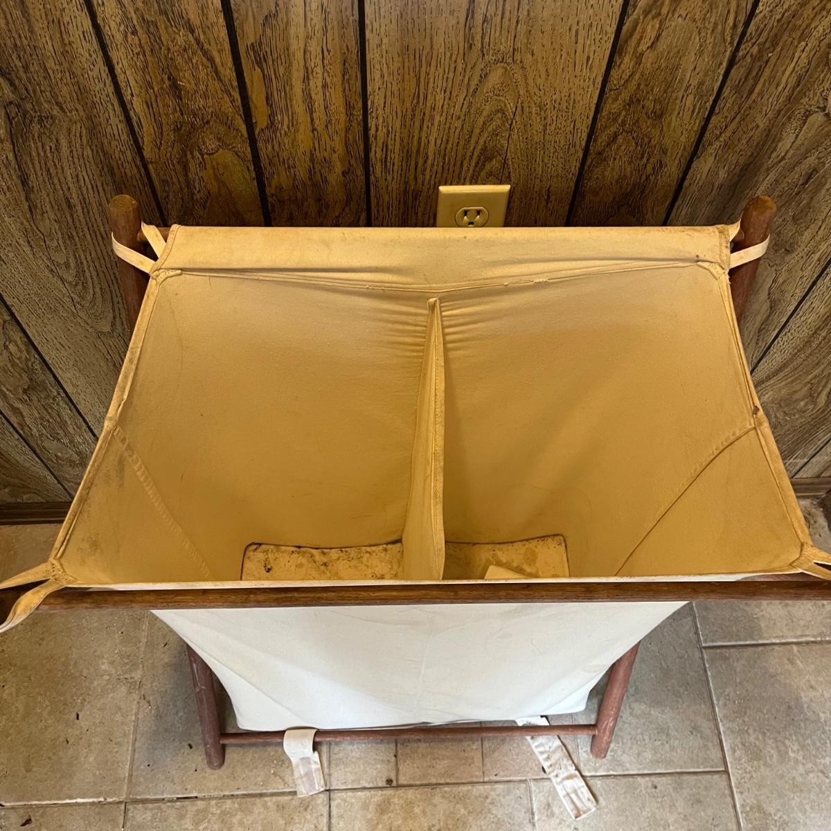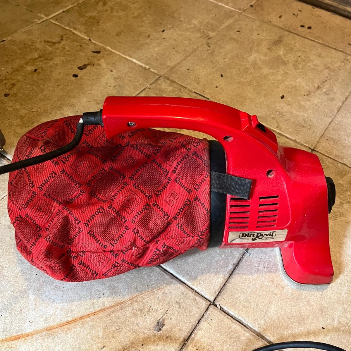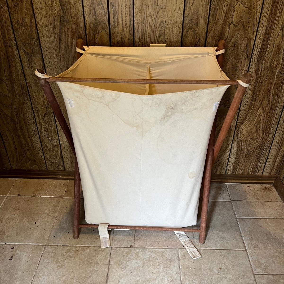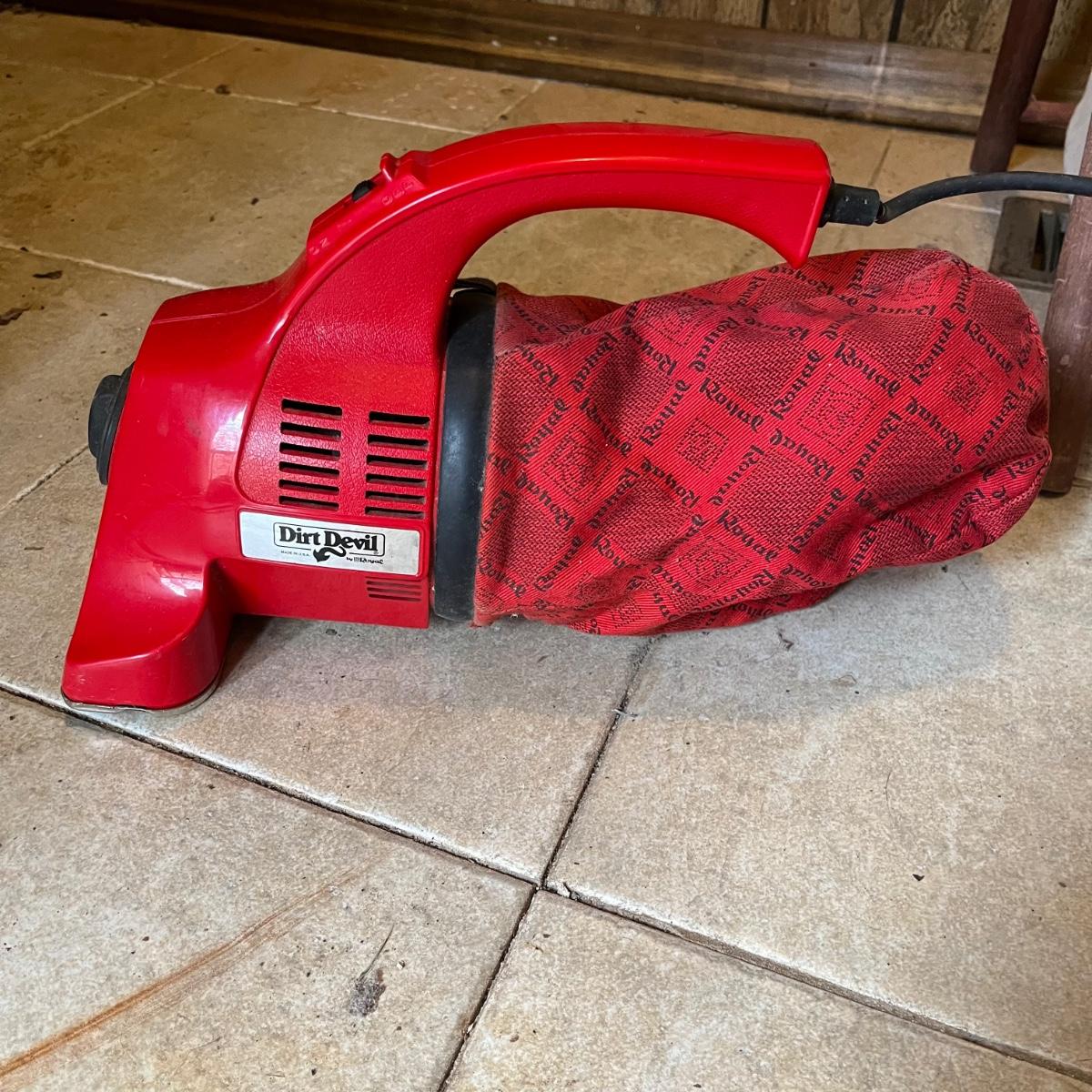 This Dirt Devil vacuum worked when tested and the Proctor Silex iron powered on when tested. Lot also comes with a wooden framed hamper with cloth liner that could use a use. Hamper measures 15” x 26” x 32”.