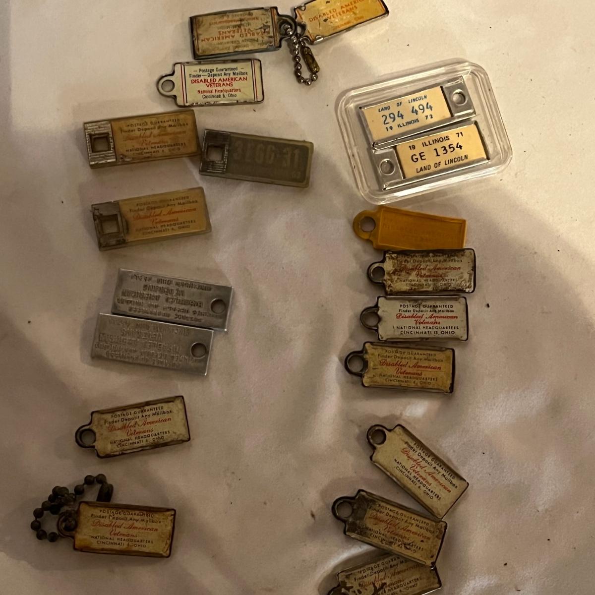 Lot contains over fifteen Disabled American Veterans license key tags. Tags measure .5” x 1.5”.