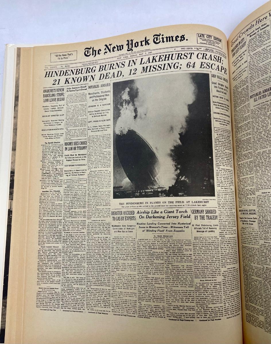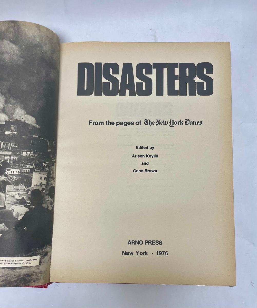 Coffee Table book with pictures of NY Times front pages spanning from 1871 to 1975. Over 140 disasters of all types that were covered by the newspaper.