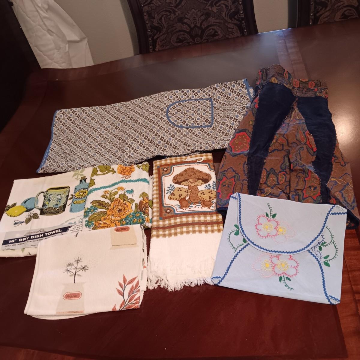 DISH TOWELS, APRONS AND A BUN KEEPER