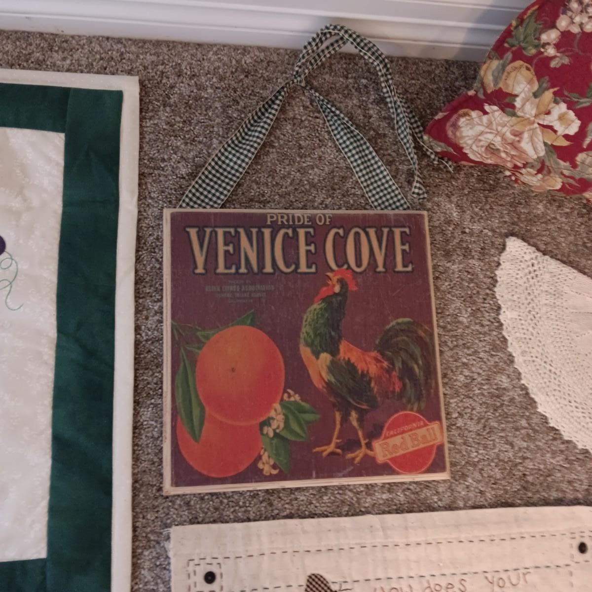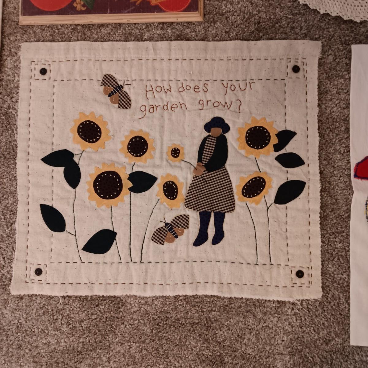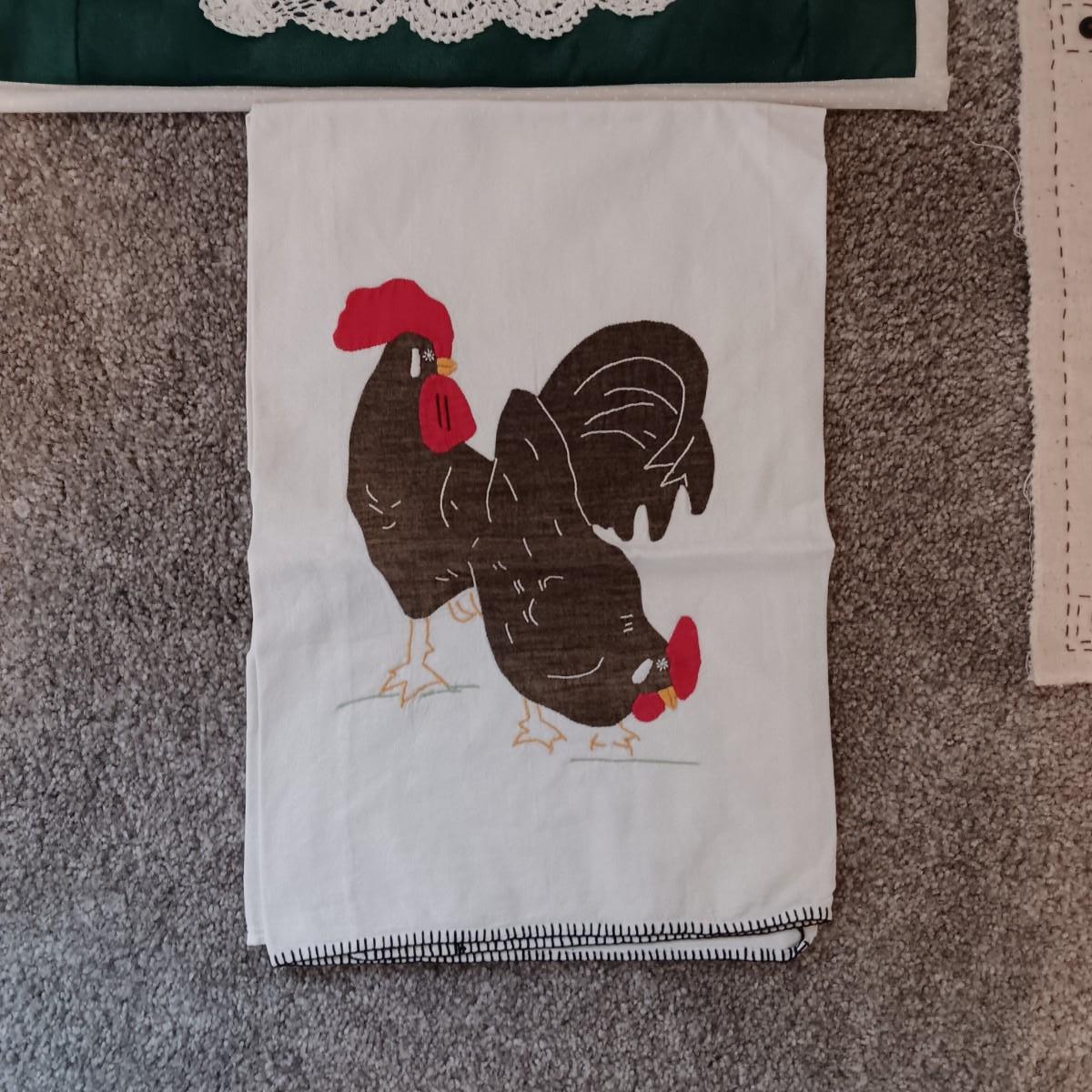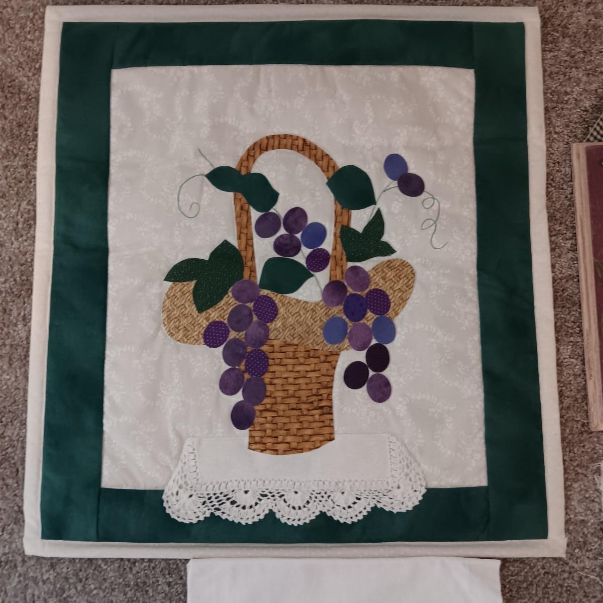 DISH TOWELS, THROW PILLOW, WALL HANGINGS AND A DOILY