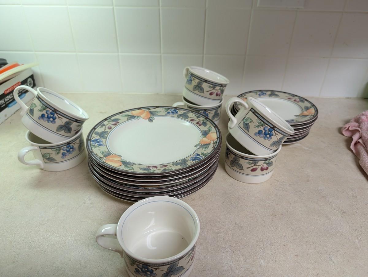 Mikasa Intaglio fruit design dishes.
