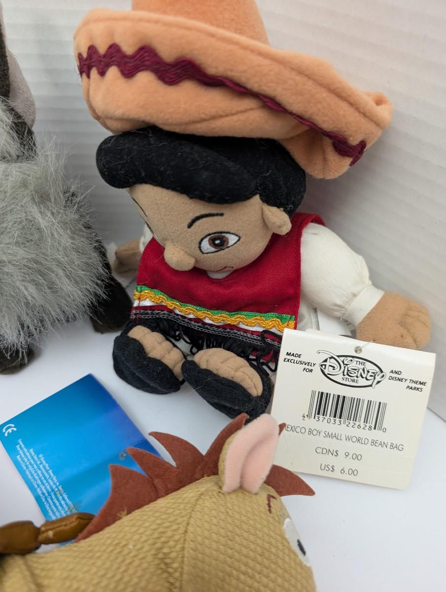 Disney Bean Bag Plush Lot Vintage Characters Jiminy Cricket Mickey Mouse Wolf Small World Horse