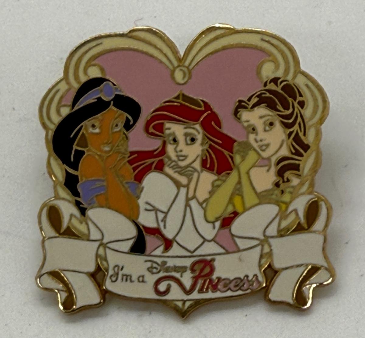 Disney Trading Pin Lanyard Starter series pin 2 of 2 - I'm A Princess - Jasmine Ariel Belle - 2005 - Aladdin, Little Mermaid, Beauty & Beast