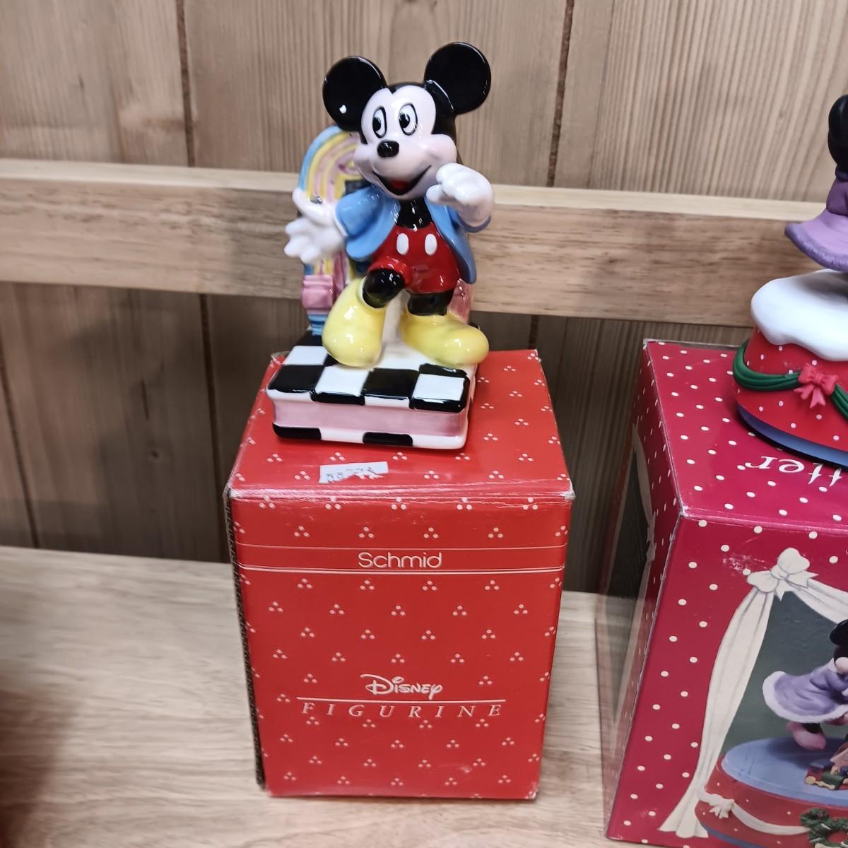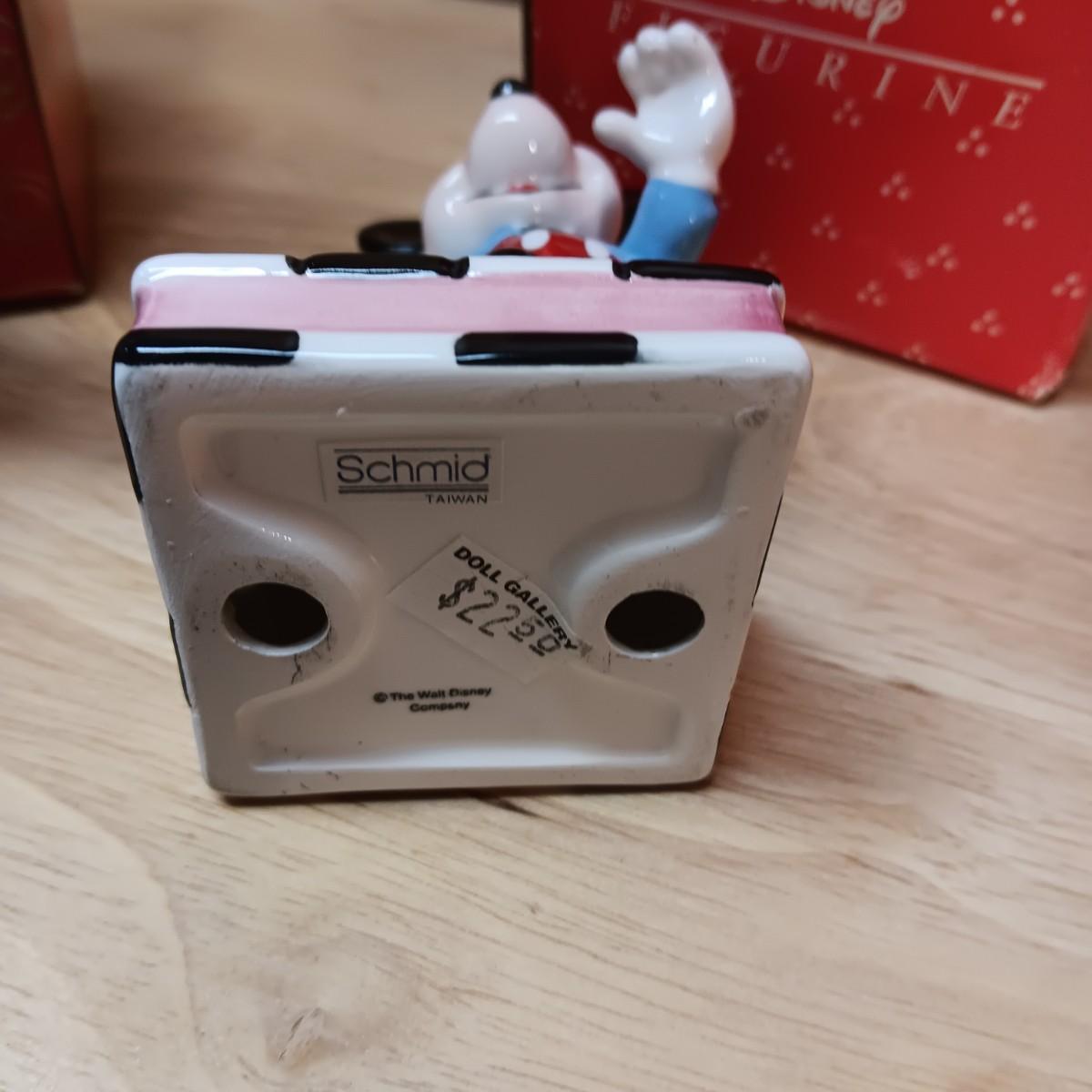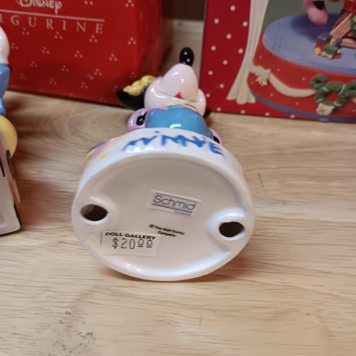 DISNEY CERAMIC FIGURINES AND MICKEY & MINNIE ON A MOVING SEESAW MUSIC BOX