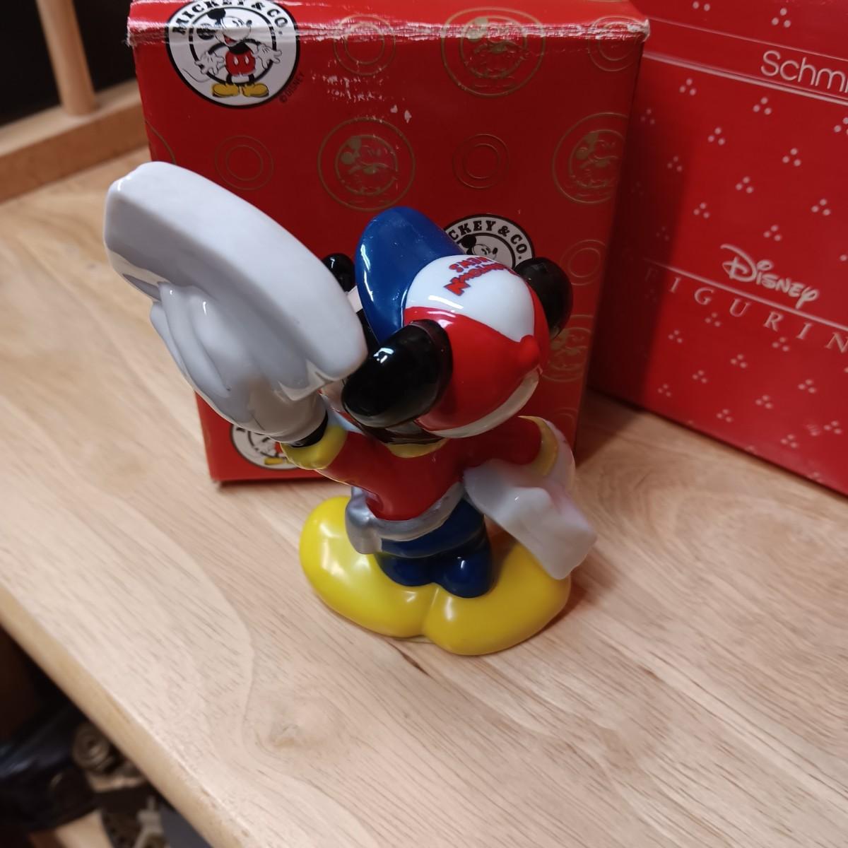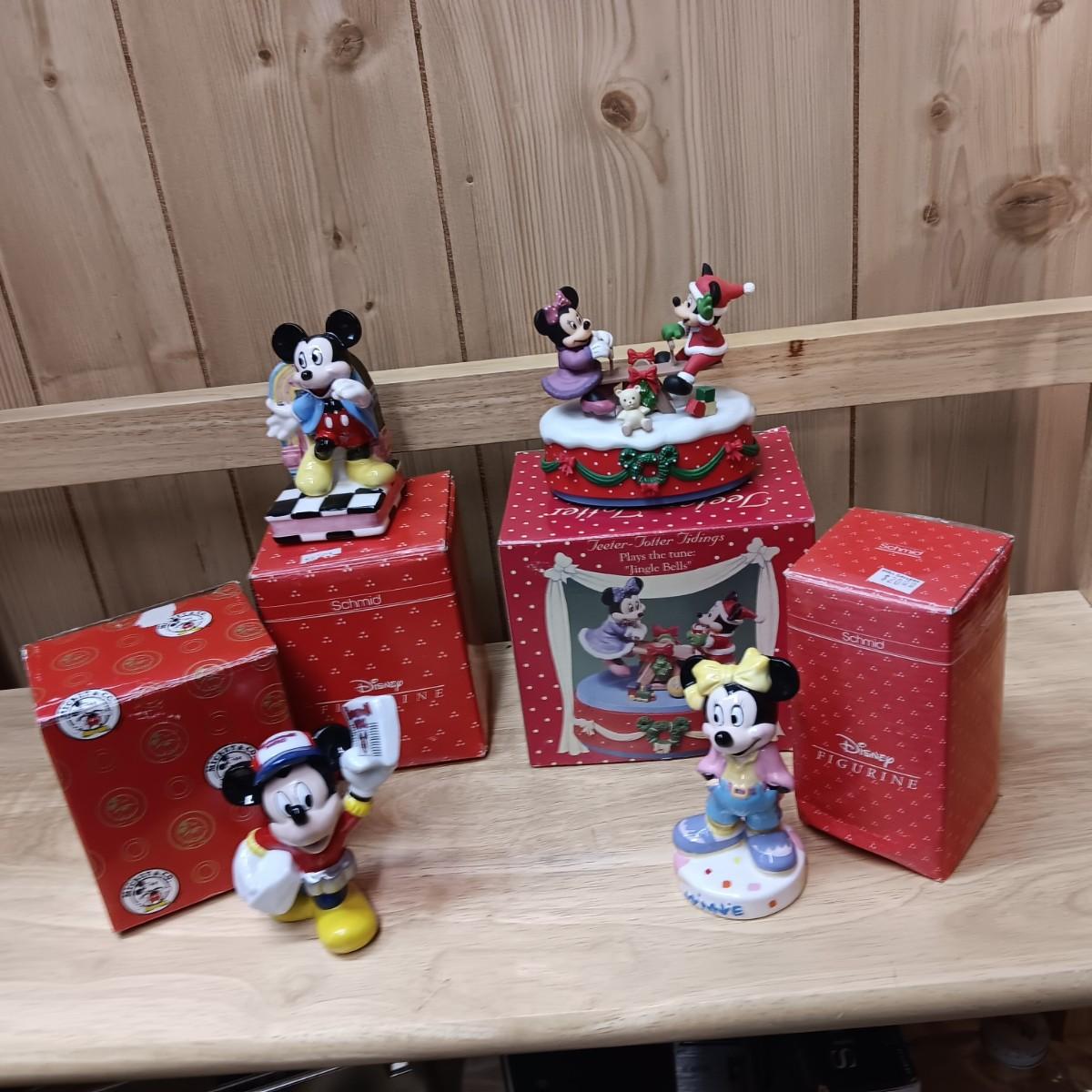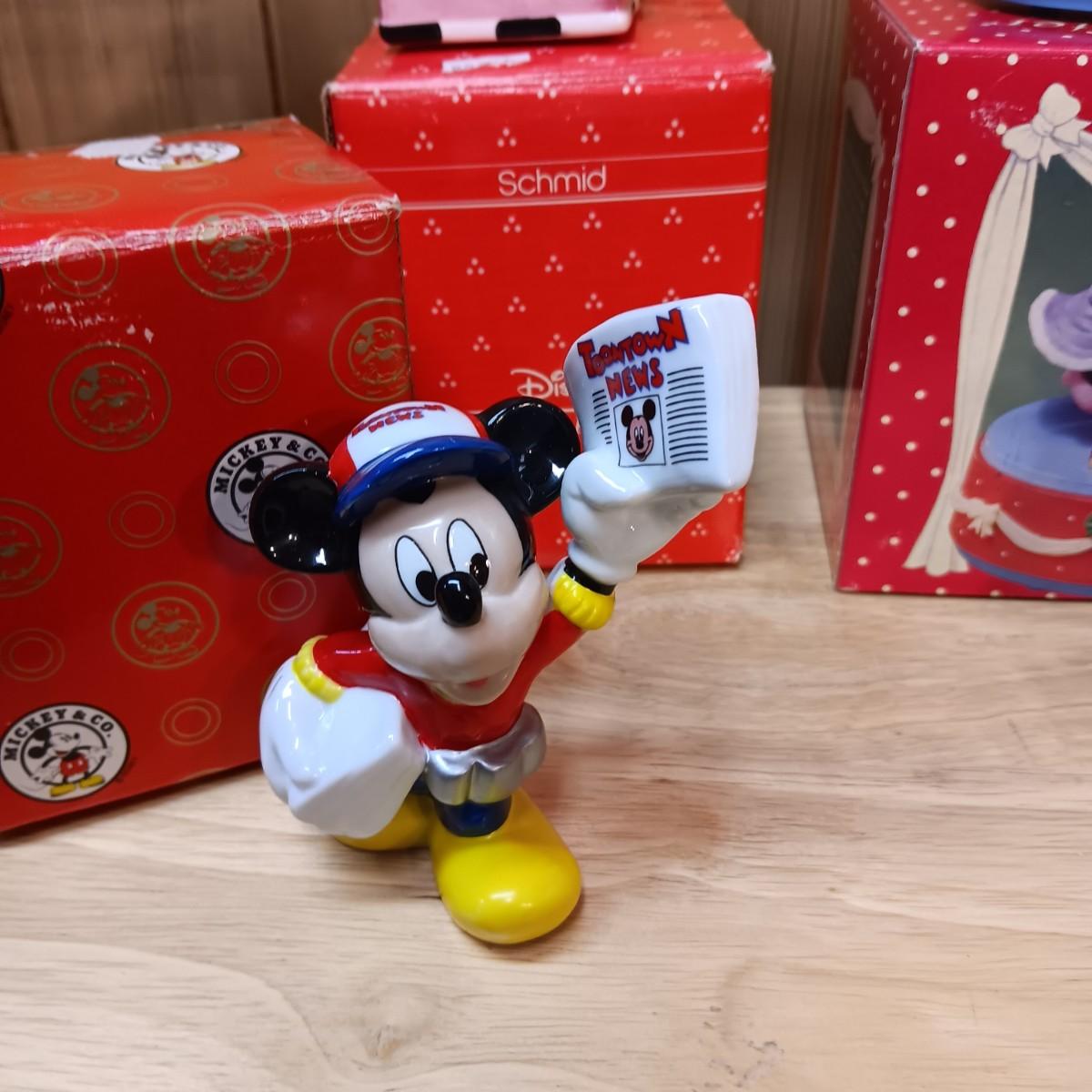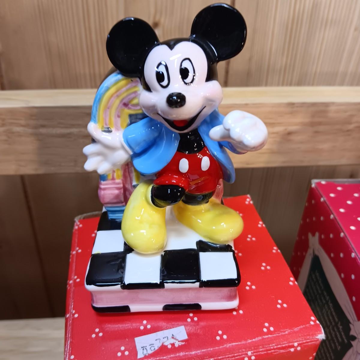 DISNEY CERAMIC FIGURINES AND MICKEY & MINNIE ON A MOVING SEESAW MUSIC BOX
