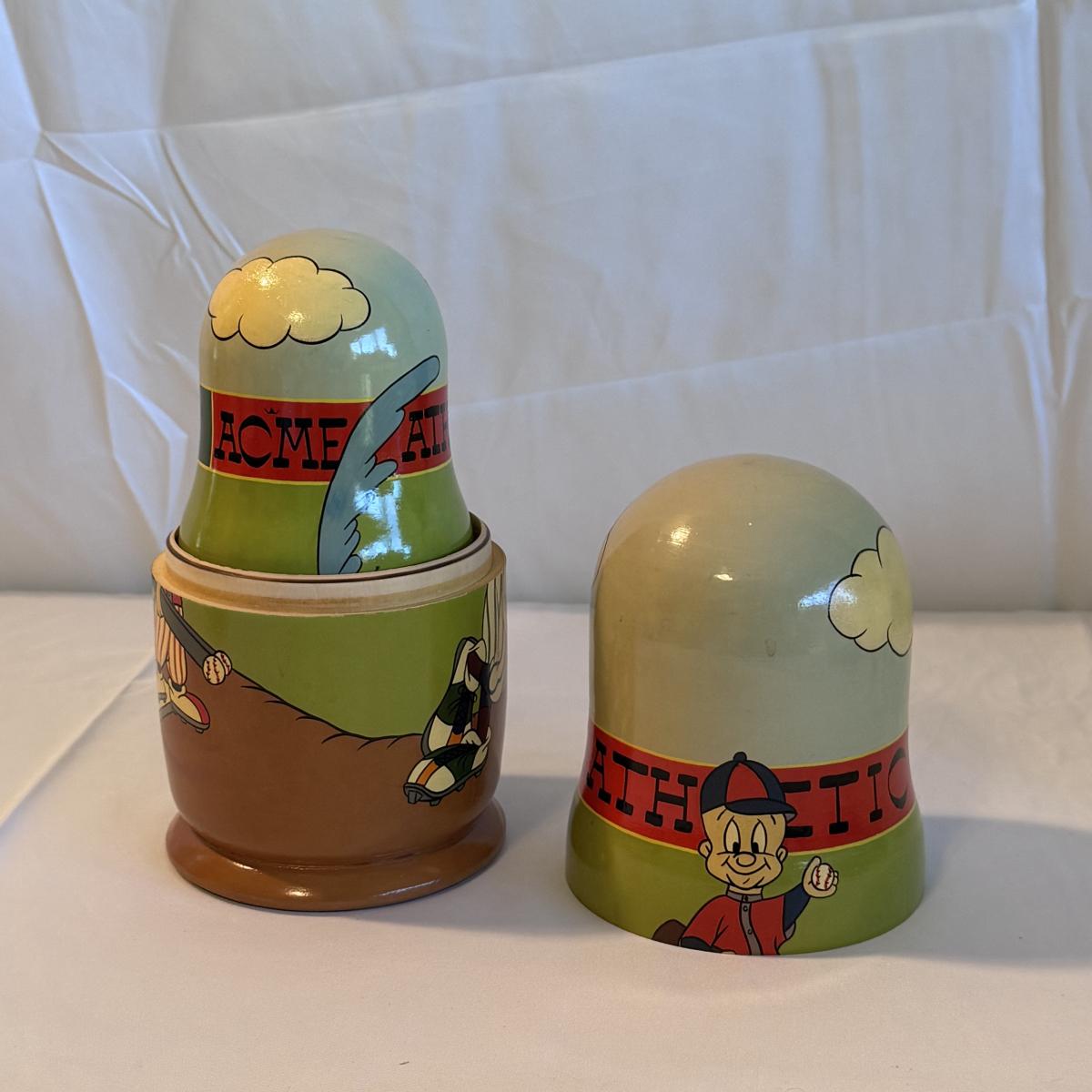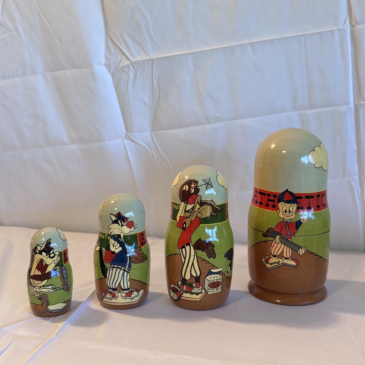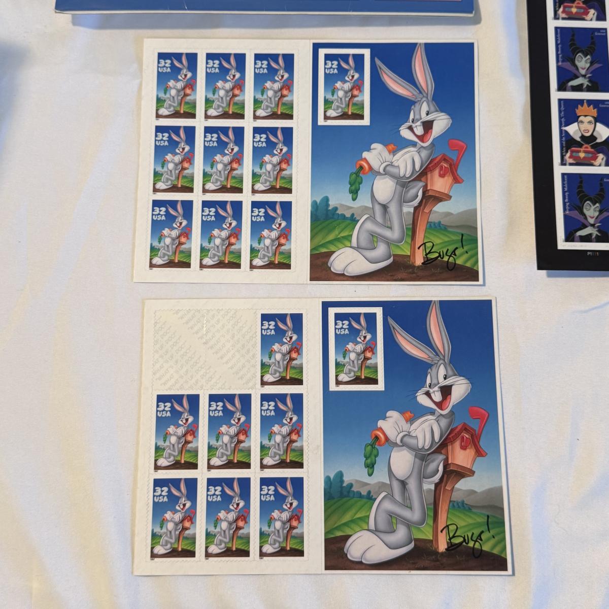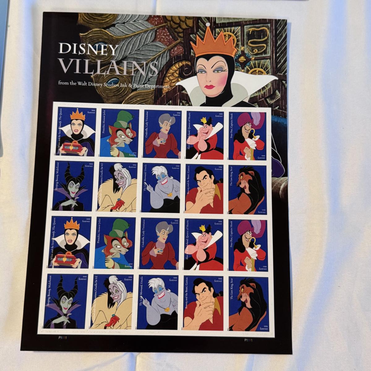This lot includes several Disney items, perfect for the avid Disney collector. You’ll find a set of Looney Tunes nesting dolls, a sparkly Mickey Mouse mug, a Disney Land Minnie Mouse stuffed animal, and a Mickey Mouse hand puppet. You’ll also find five Classic Disney CD’s, a Disney Day hat, a Mickey and Minnie Mouse wall hanging quilt, Disney themed bags, and several Disney stamps. The canvas bag has a small stain, see photo. The wall hanging quilt is the largest item that measures 34.5” x 41”H. Shipping available.