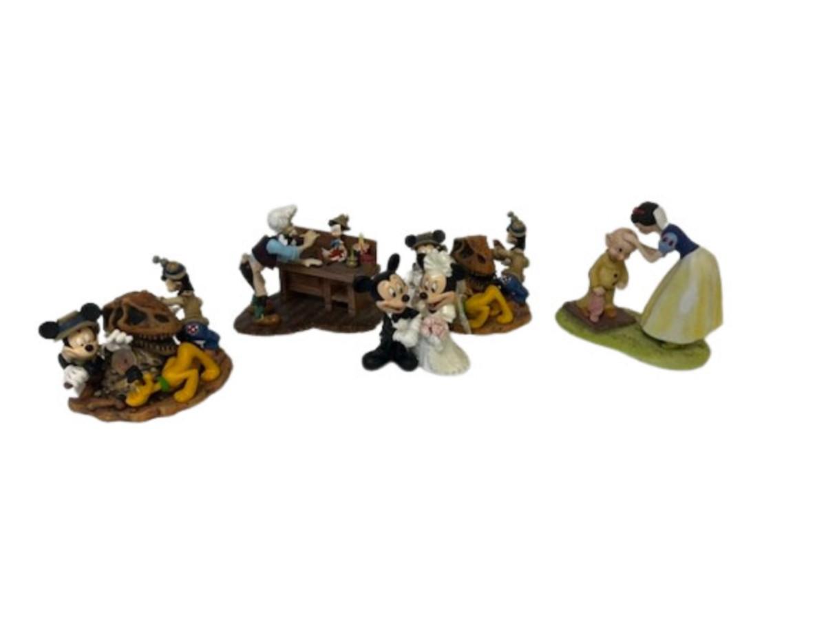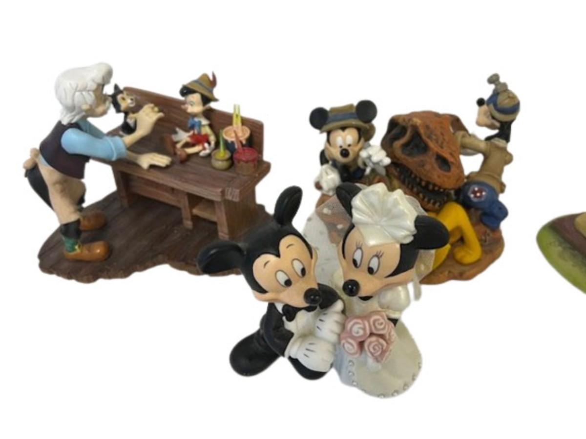 Includes Mickey & Minnie, Pinocchio, Snow White, and more. Total of 5 pieces. No boxes. Measurement of largest: 7"H. [SD]