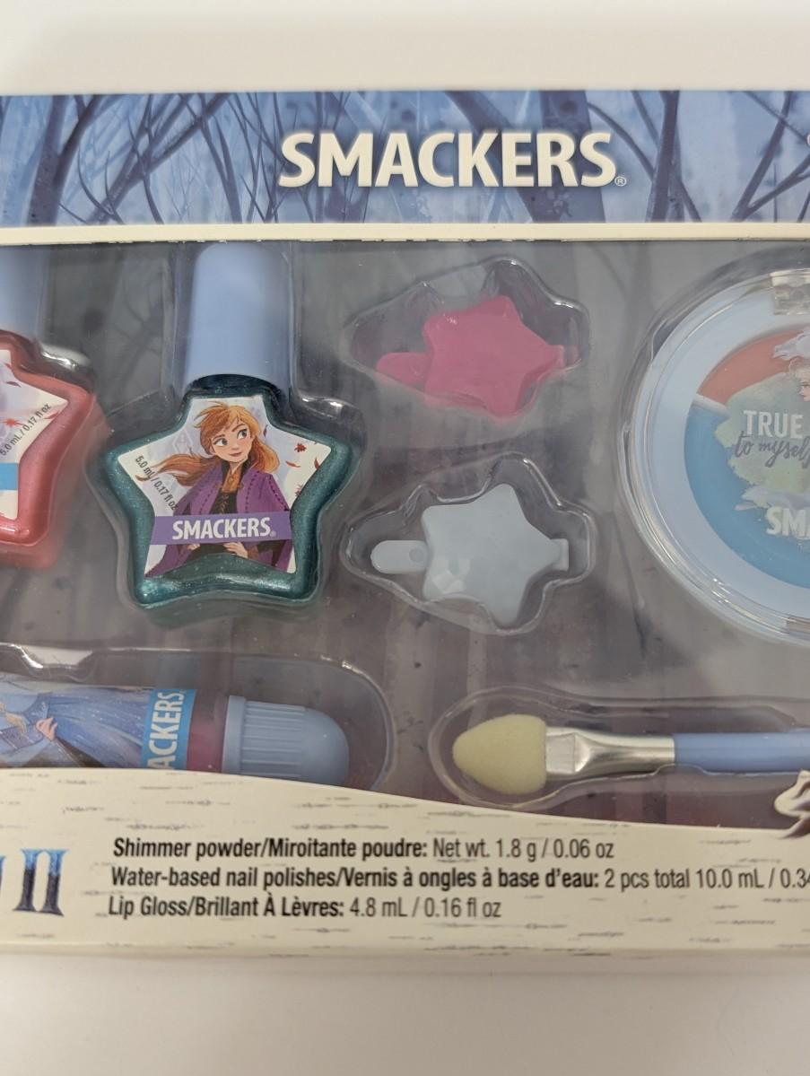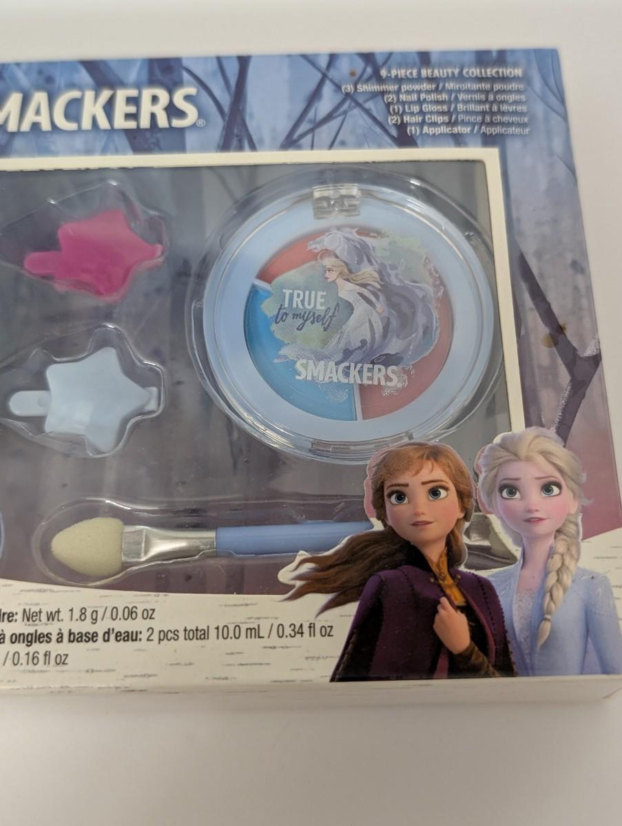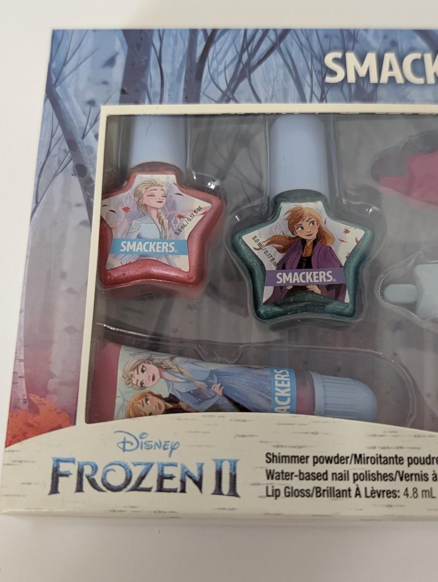 Disney, Frozen II, Frozen Smackers, kids makeup set, Disney beauty kit, Anna and Elsa, Frozen collectible, nail polish set, lip gloss set, pretend play makeup, Smackers set