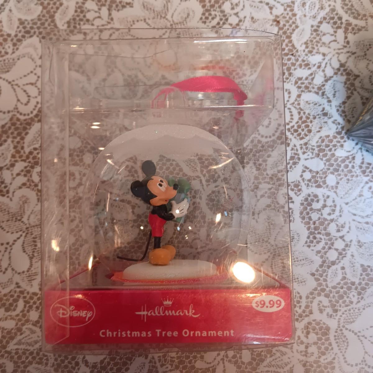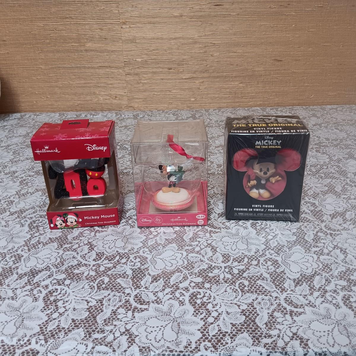DISNEY HALLMARK MICKEY MOUSE CHRISTMAS ORNAMENTS AND A VINYL FIGURE