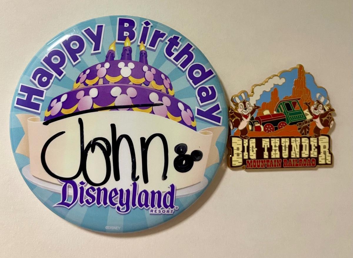 Disney Happy Birthday Button and part of a Disney Trading Pin