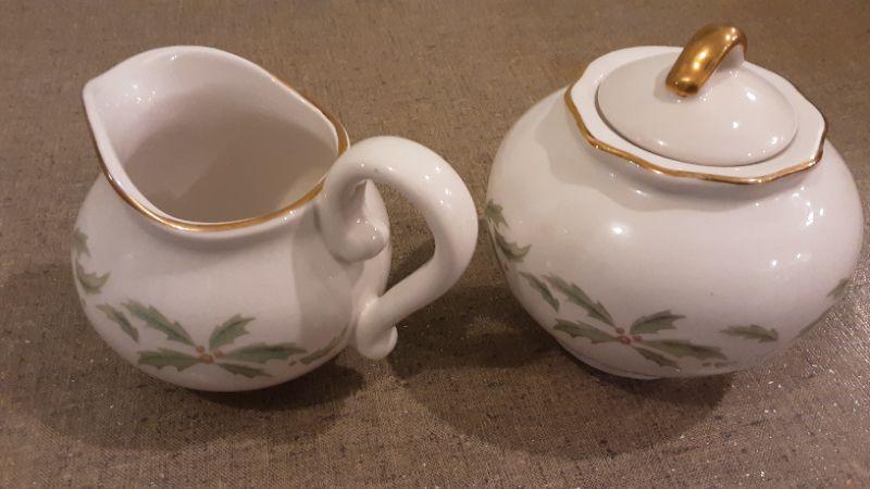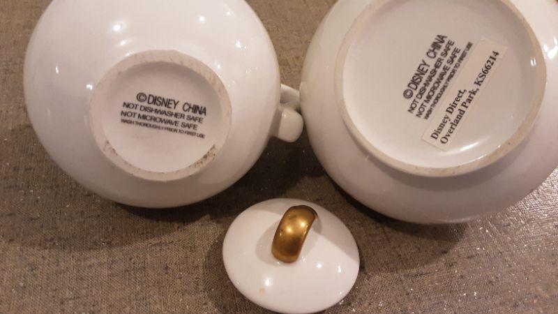Disney Holiday Sugar and Creamer with a Holly motif and gold trim - Disney Direct