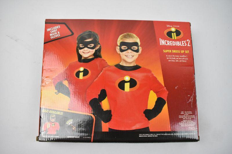 Disney Pixar Incredibles Super Dress Up Set, Shirt, Mask, & Gloves for Sizes 4-6 - New, Damaged Package