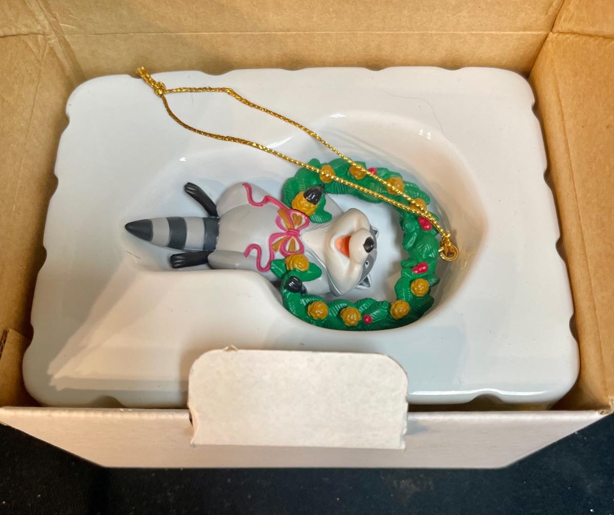 Disney Meeko Raccoon in Wreath Christmas Ornament