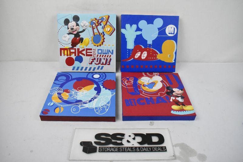 Disney Mickey Mouse 4-Piece Canvas Wall Art, 11.5"x11.5"