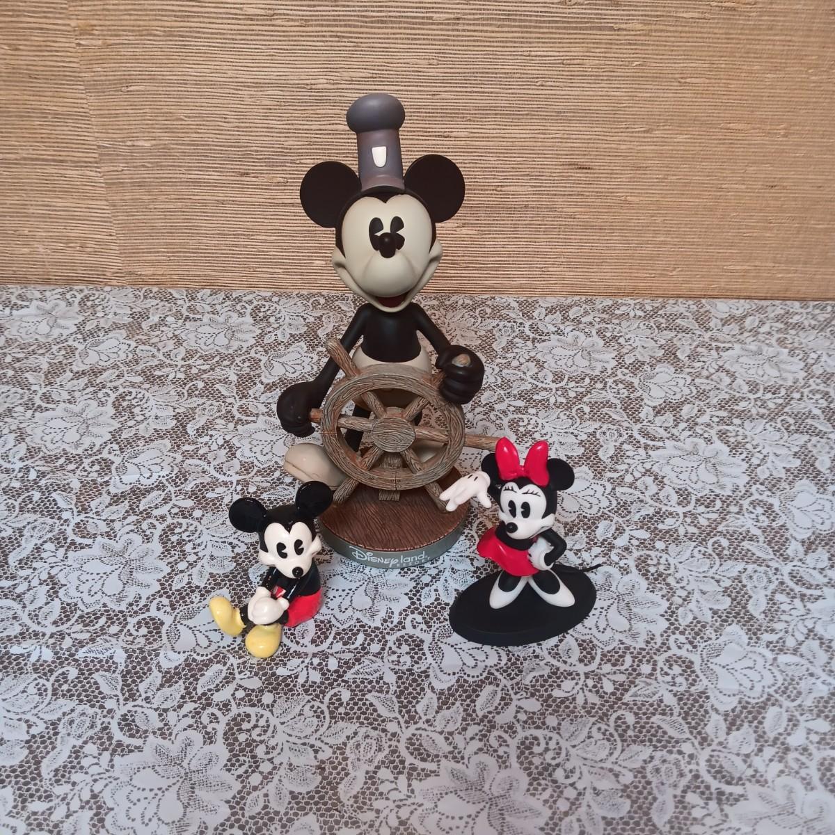 DISNEY MICKEY MOUSE BOBBLEHEAD AND 2 FIGURINES