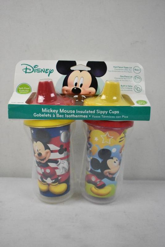 Disney Mickey Mouse Insulated Hard Spout Sippy Cups, 9 oz, 2 Pack - New