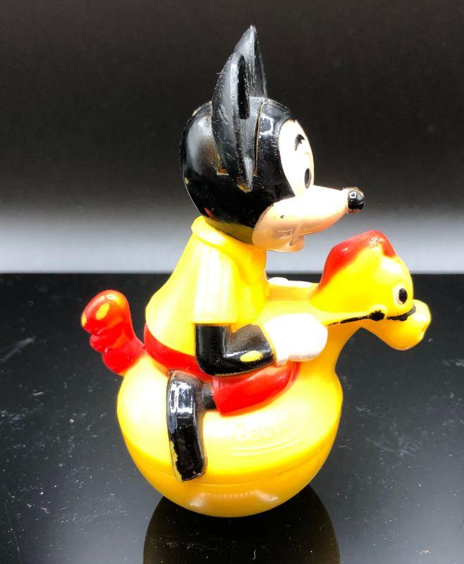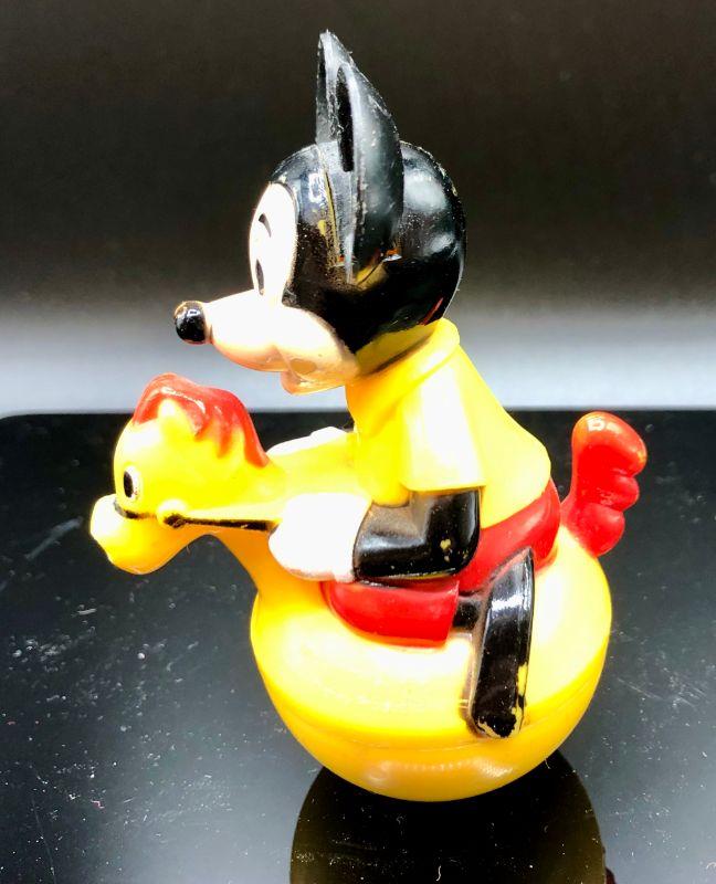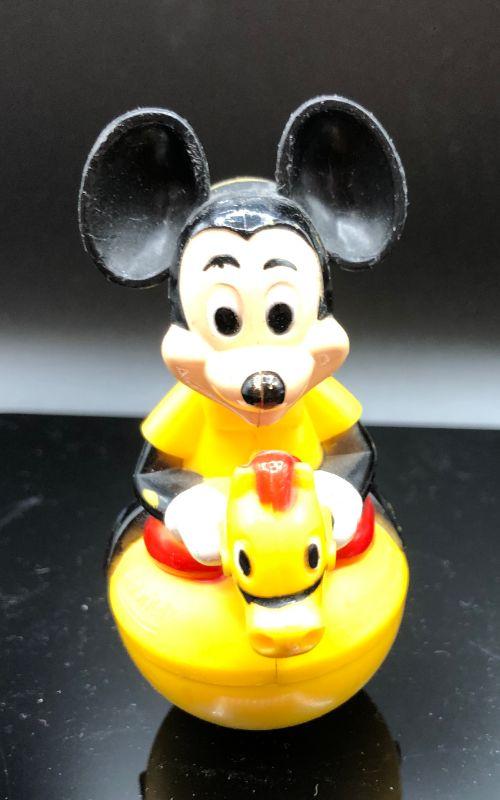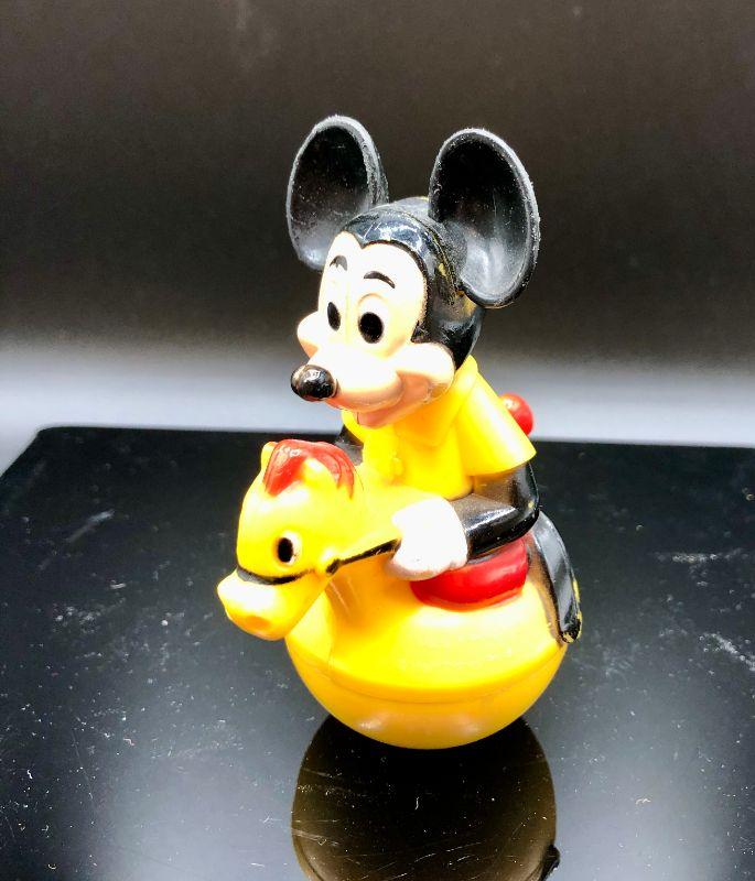 DISNEY Mickey Mouse rolly-polly mouse on yellow horse 4" high VINTAGE TOY