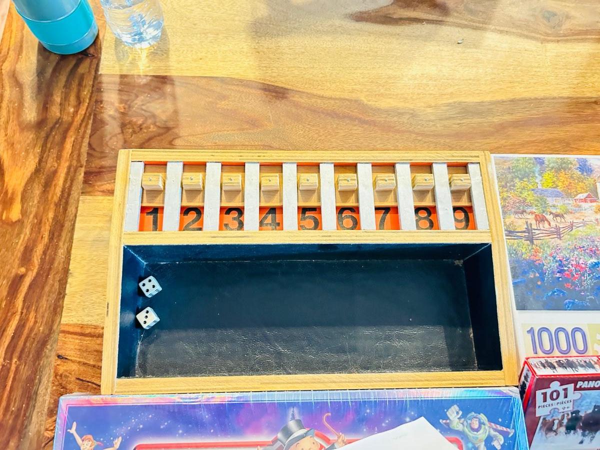 DISNEY MONOPOLY NEW INBOX, NEAT WOODEN SHAKE 45 GAME, AND A VARIETY OF PUZZLES