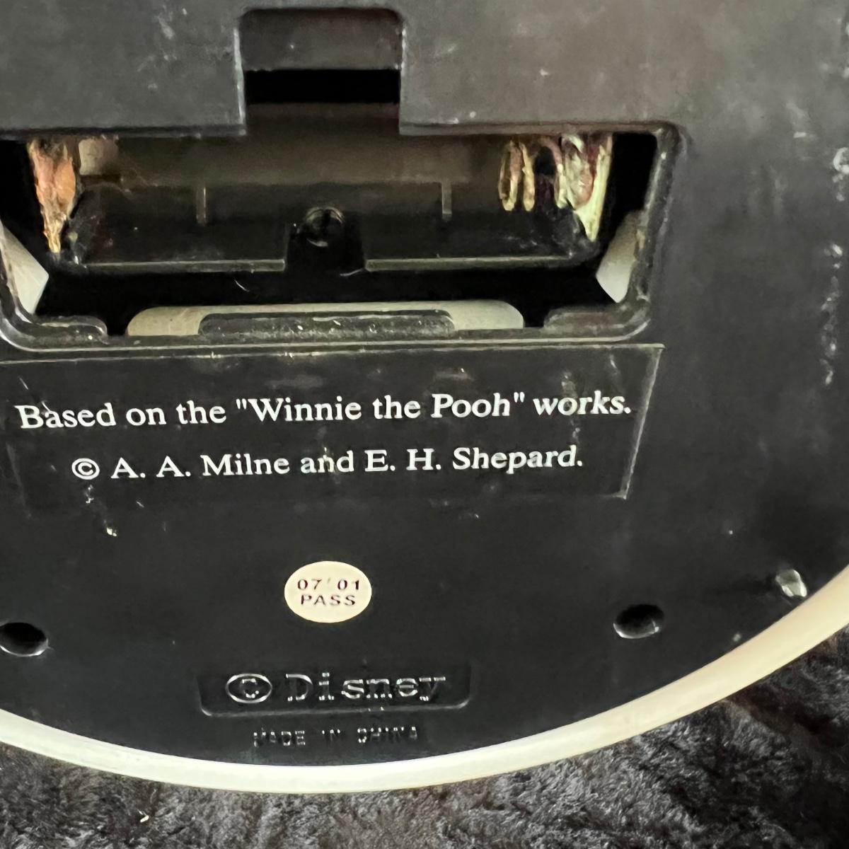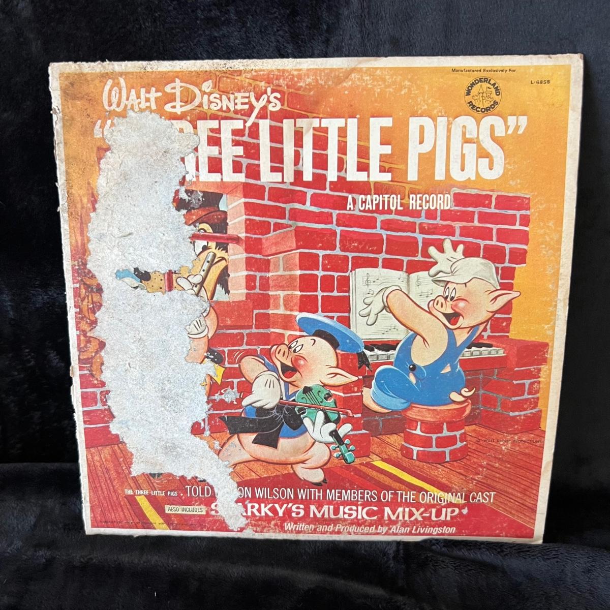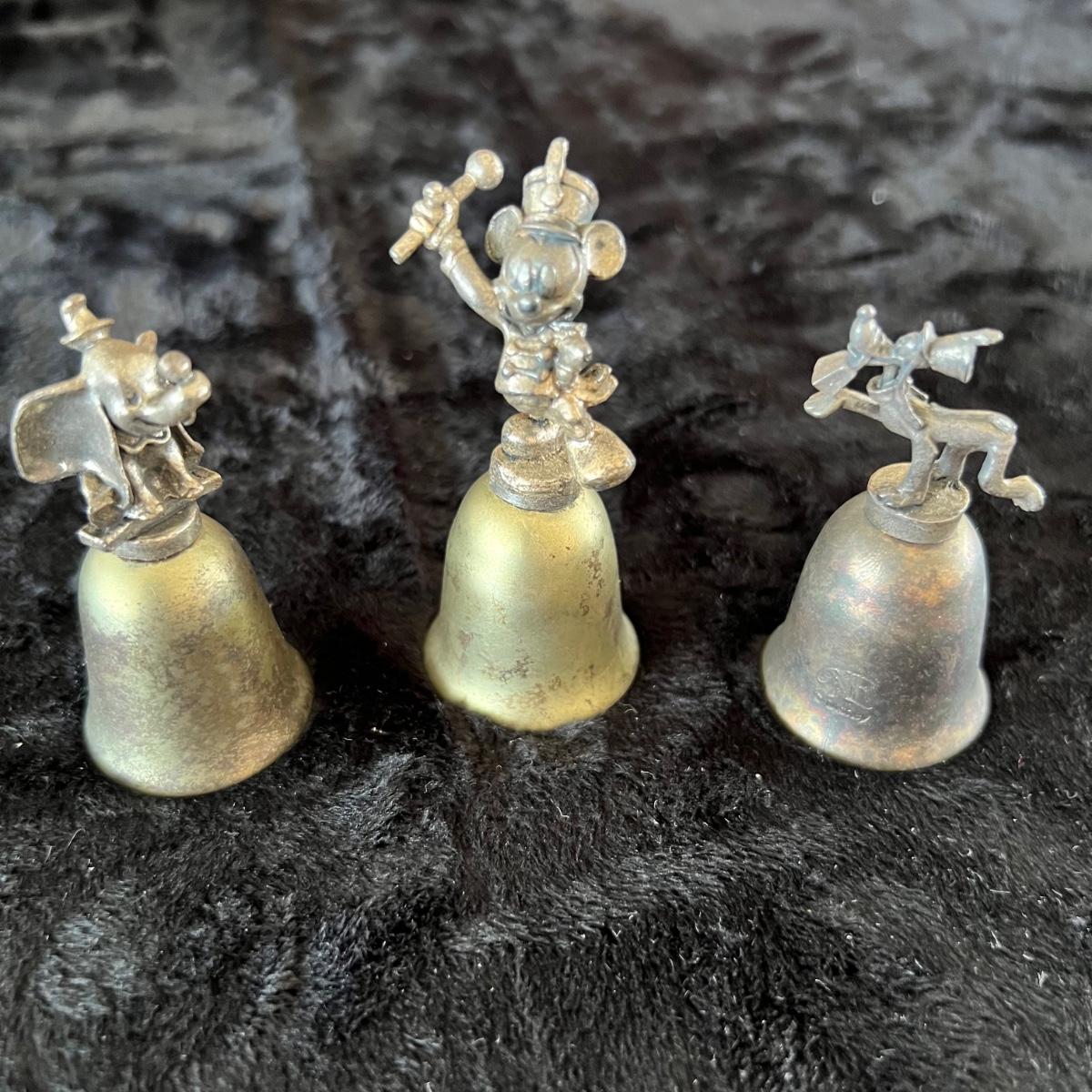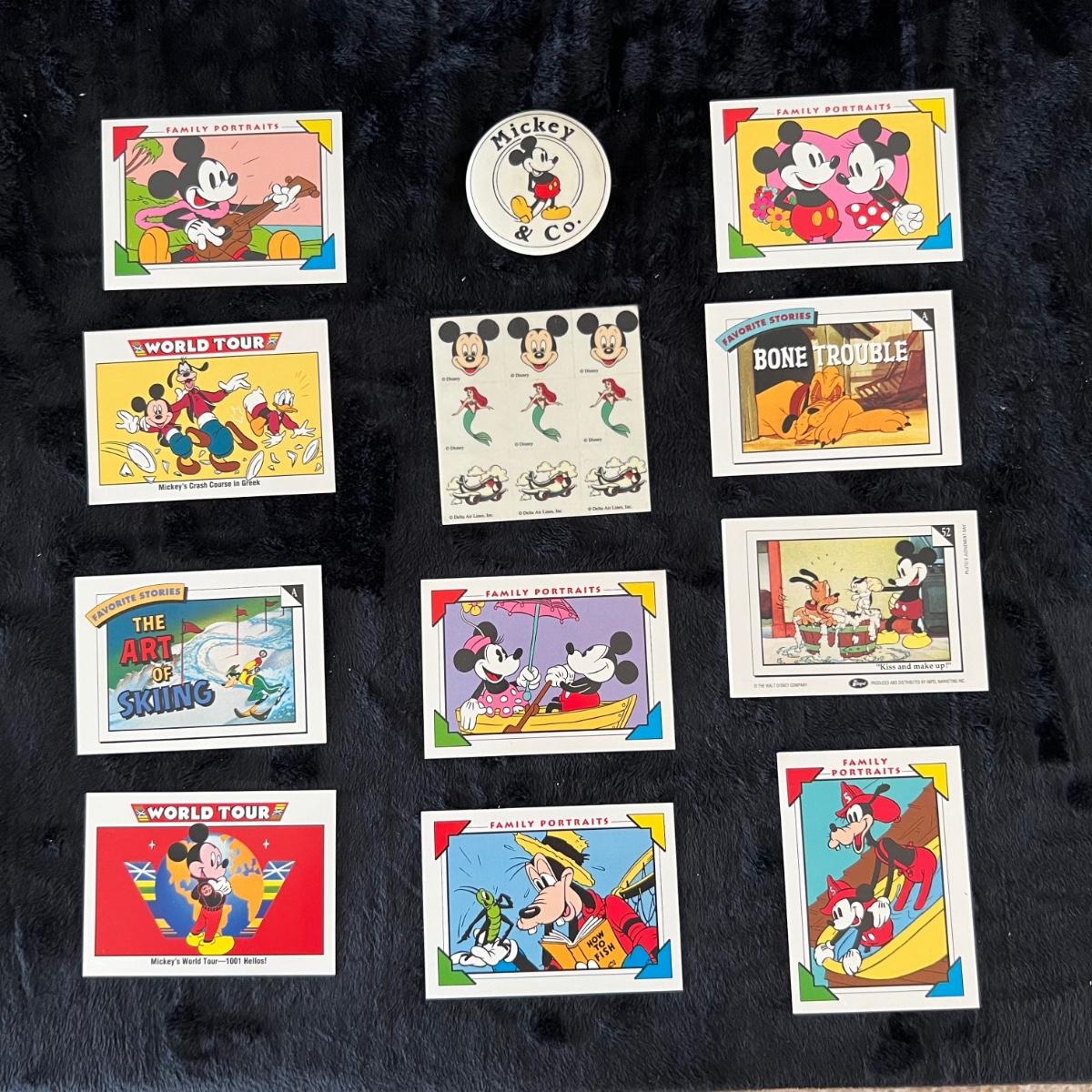 Assortment of Disney Collector Cards and stickers and one Mickey Mouse Pin.. Three Little Pigs Album is in good condition. Three small silver Disney Characters Bells. Pink Pottery Barn Kids metal clock. Measuring 8.25”L x 3”W x 11.5”H. Shipping available.