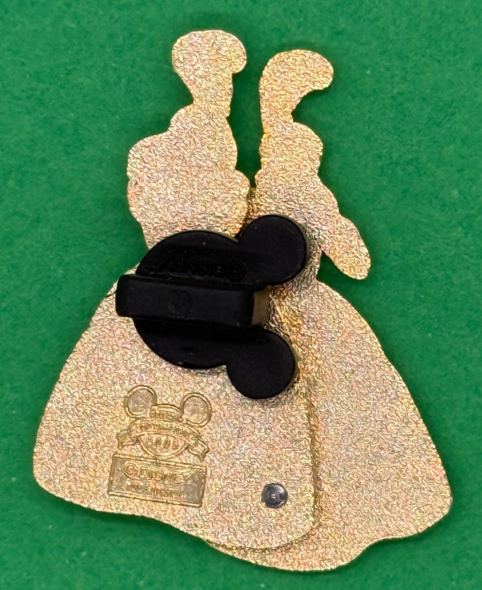 It is an open edition pin from The Walt Disney Family Museum pin series. The pin shows the full bodies of the two sisters in their ball gowns. Drizella (left) is in a light green dress with a blue feather in her hair. Anastasia (right) is in a pink dress with a red feather in her hair.