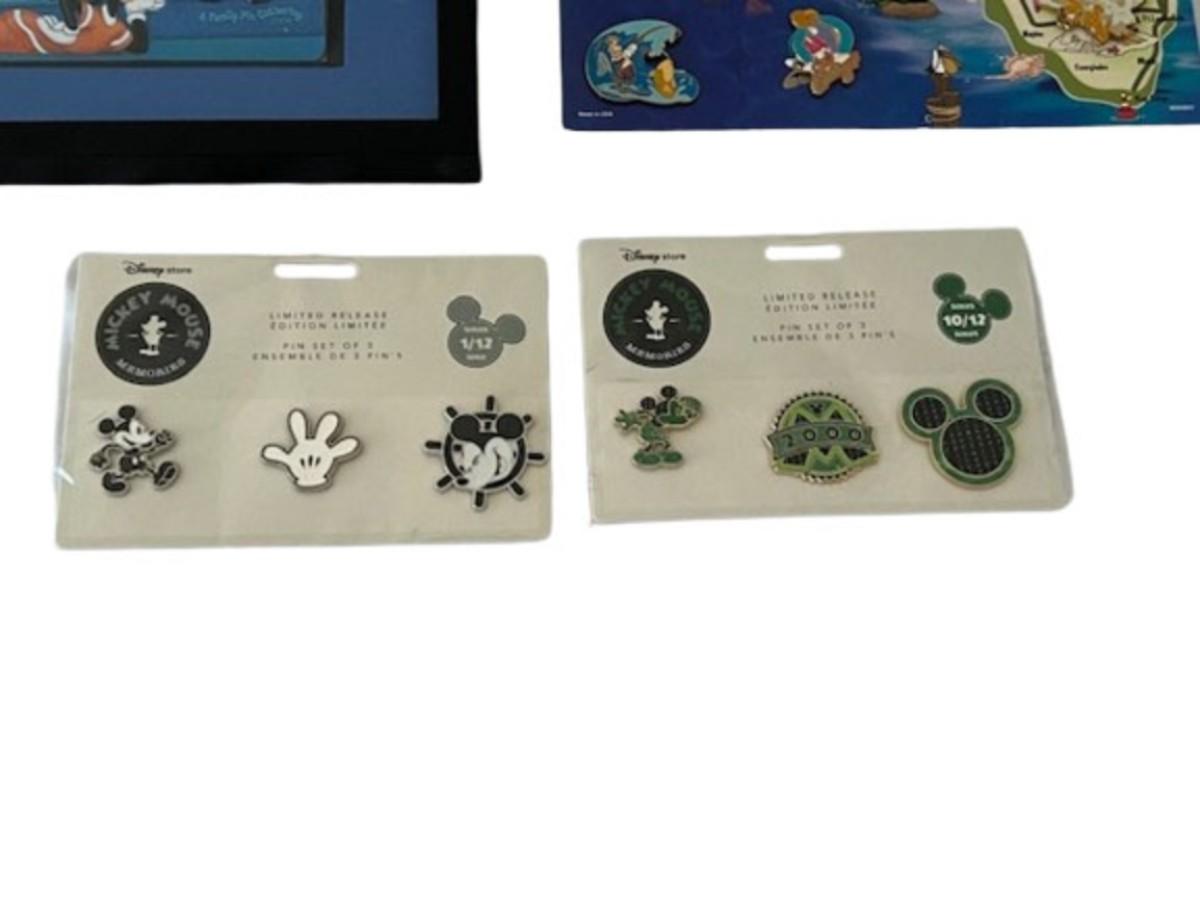 Includes Mickey Mouse Memories, Ariel, Dopey, and more. Six sets, with a total of 16 pins. [SD]
