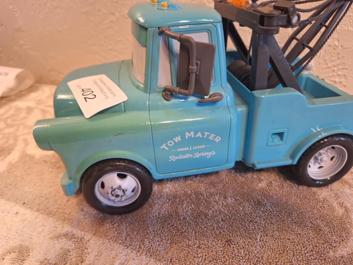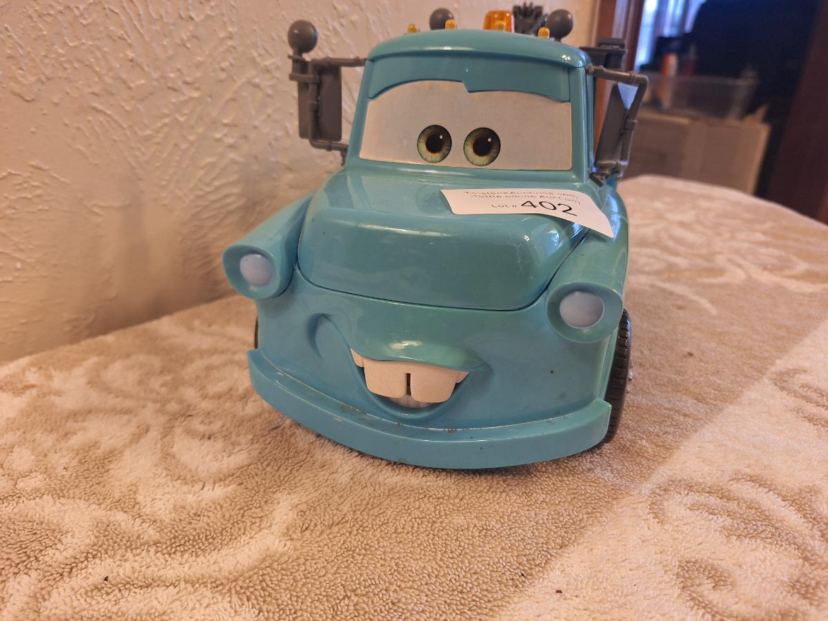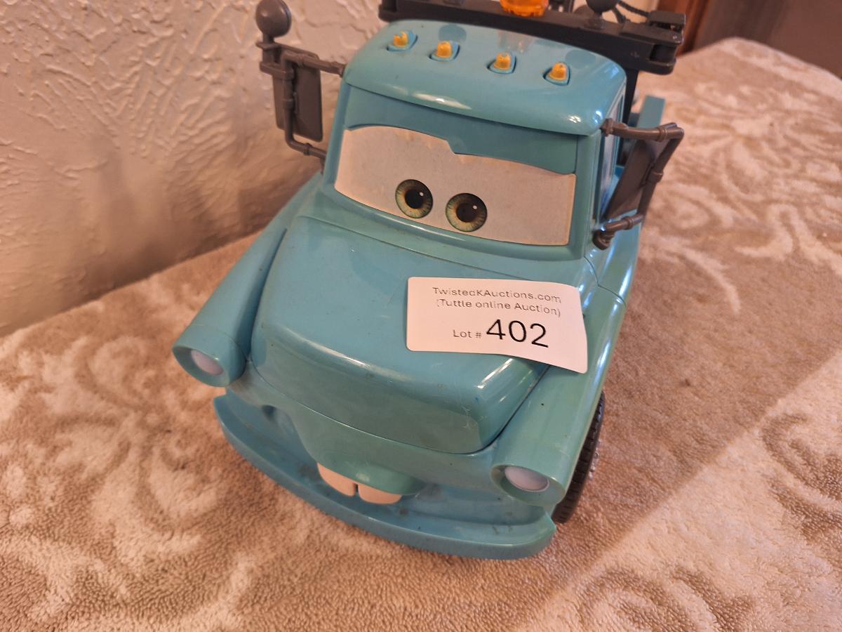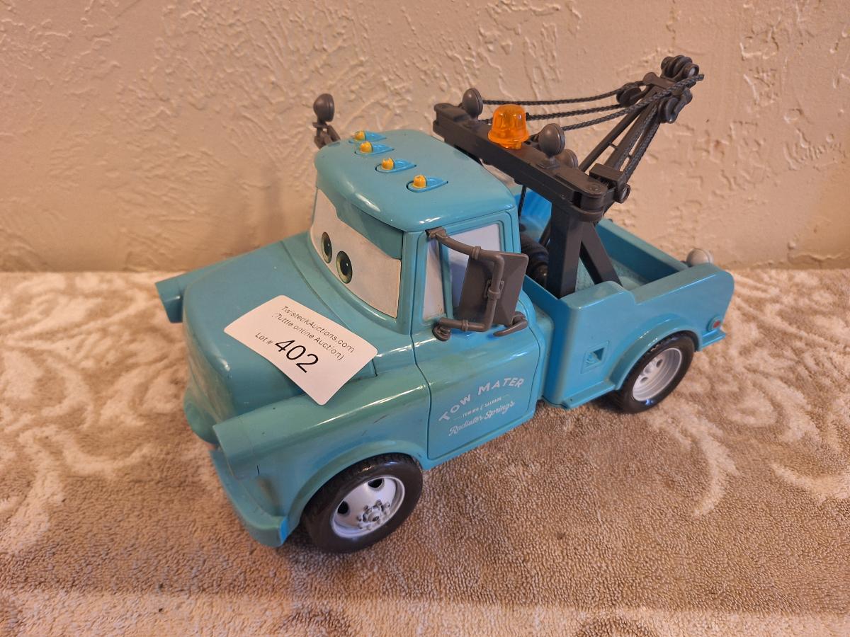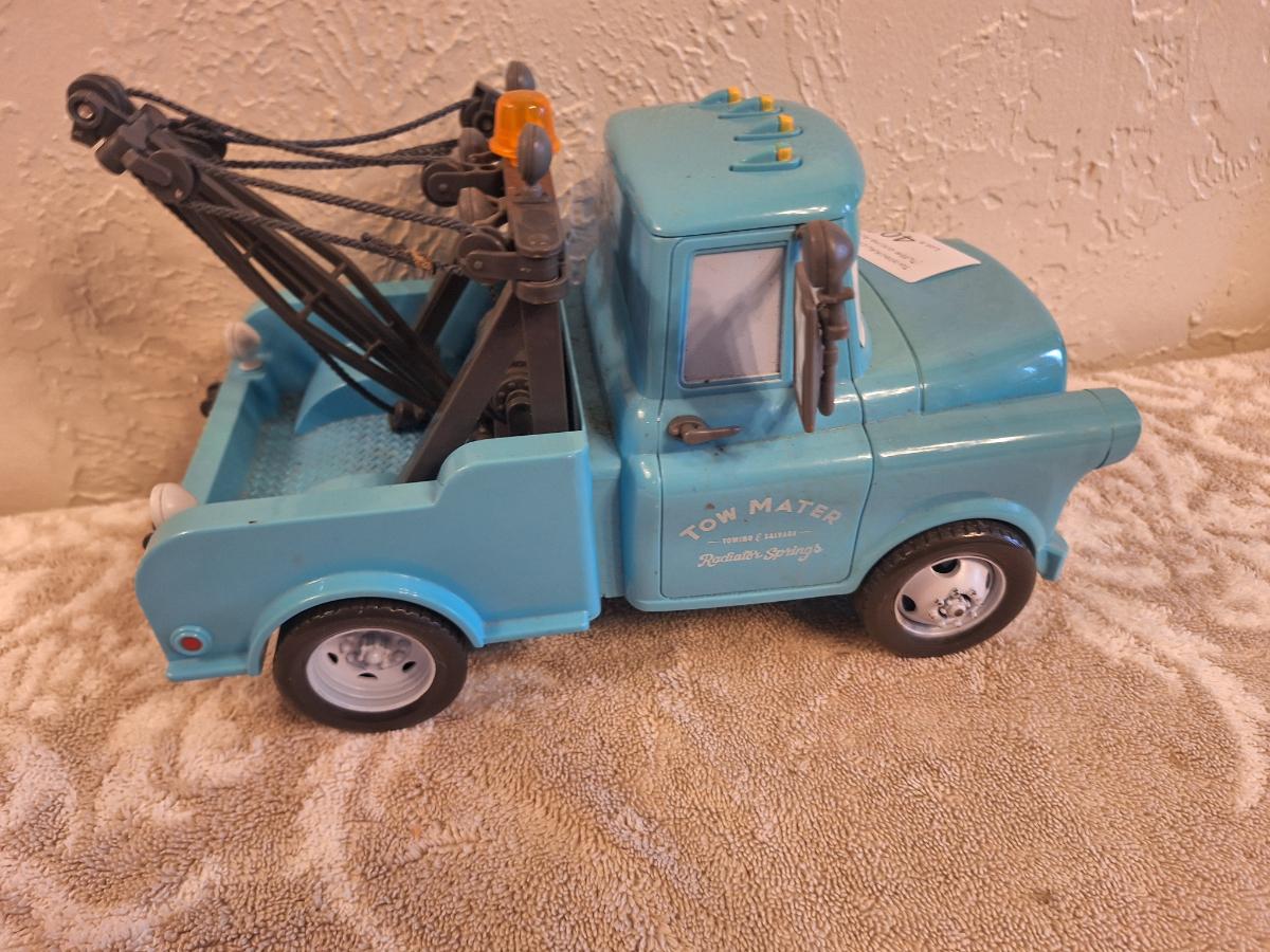 Disney Pixar Cars Tow Mater toy. This is a larger toy the auction sticker is 2 inches wide if that helps for size comparison