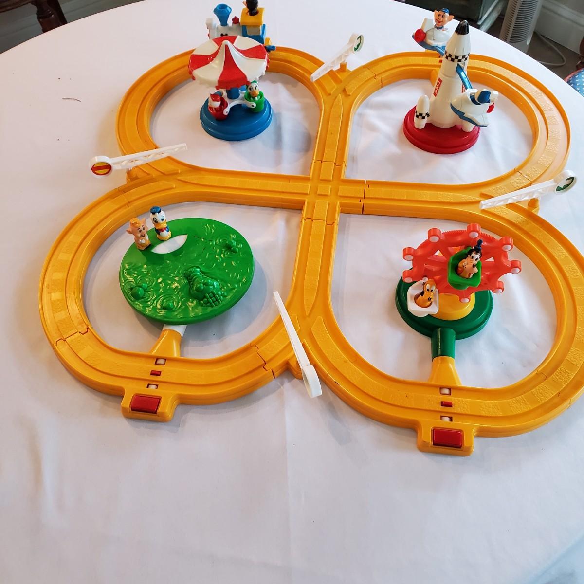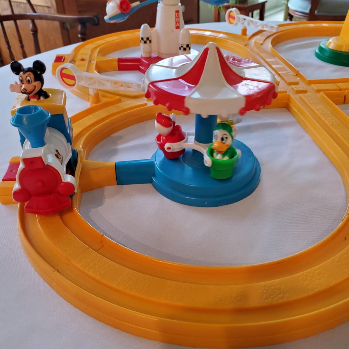 Pre-owned by 1 child. It is missing the boat on the alligator piece, and the rocket needs adjusting. 10 characters. All else is in good condition.