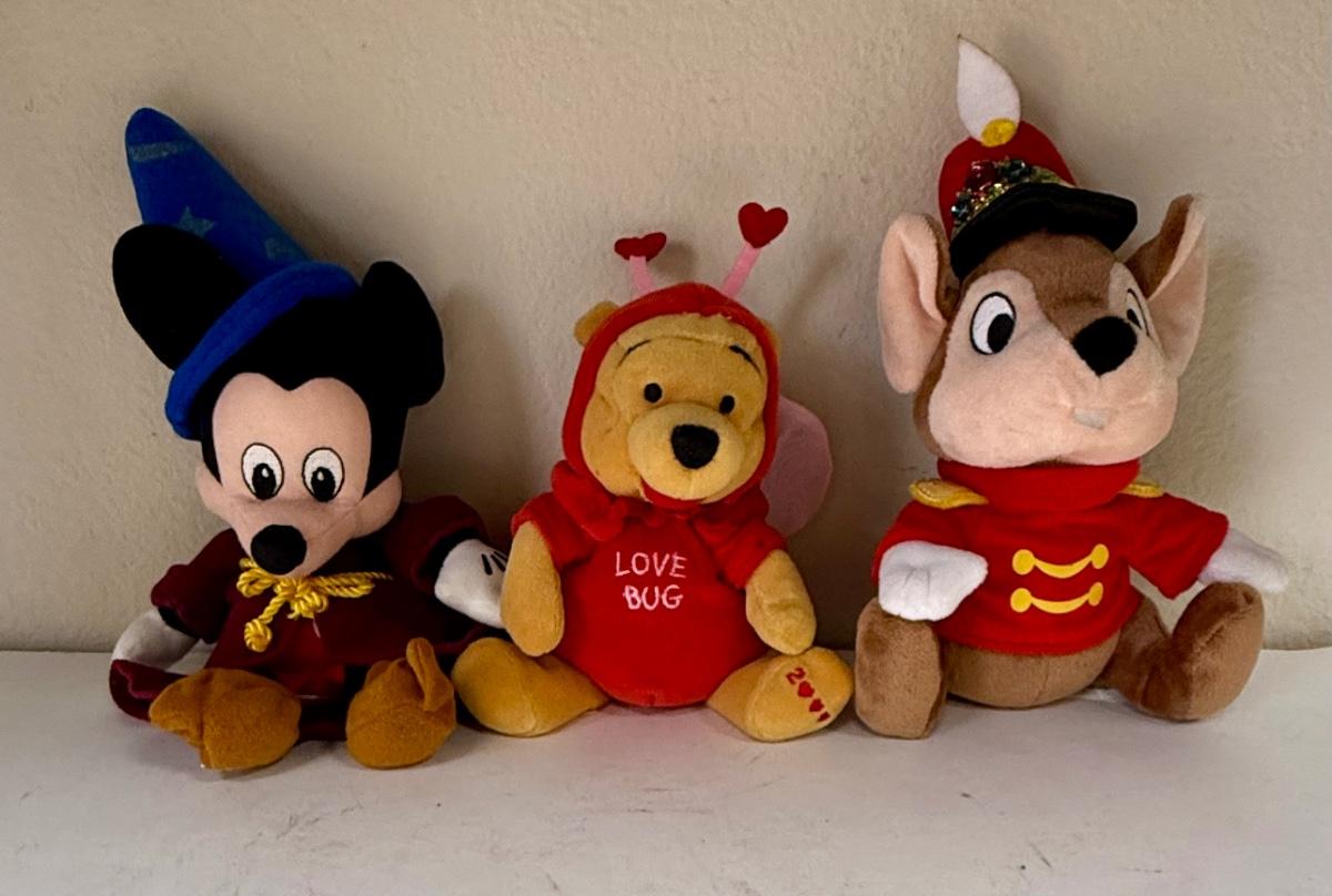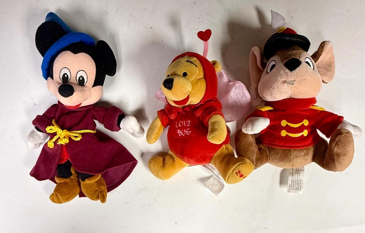 Disney Plush Lot: Sorceror Mickey, Timothy Mouse, Valentines Pooh