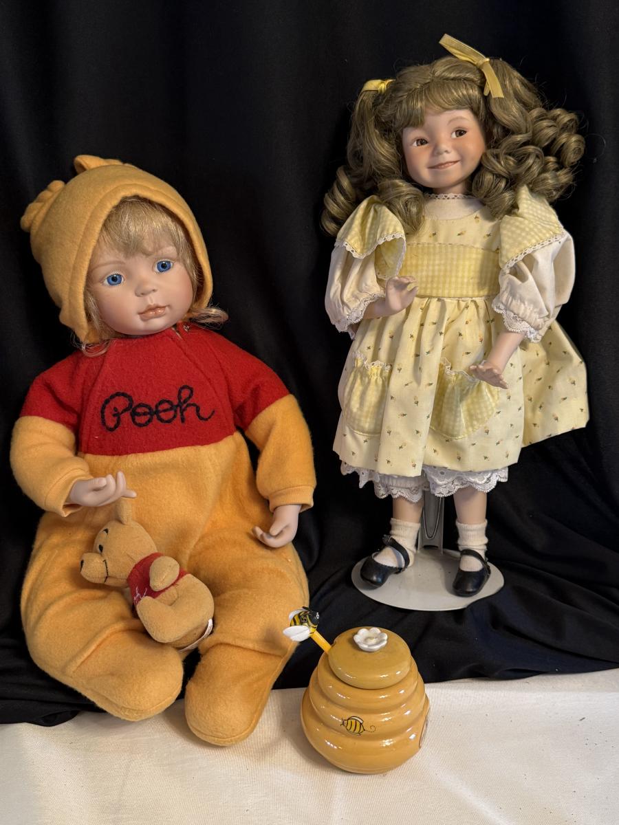 Disney Pooh Doll, Honey jar, Yellow dress Doll