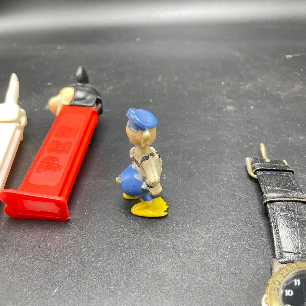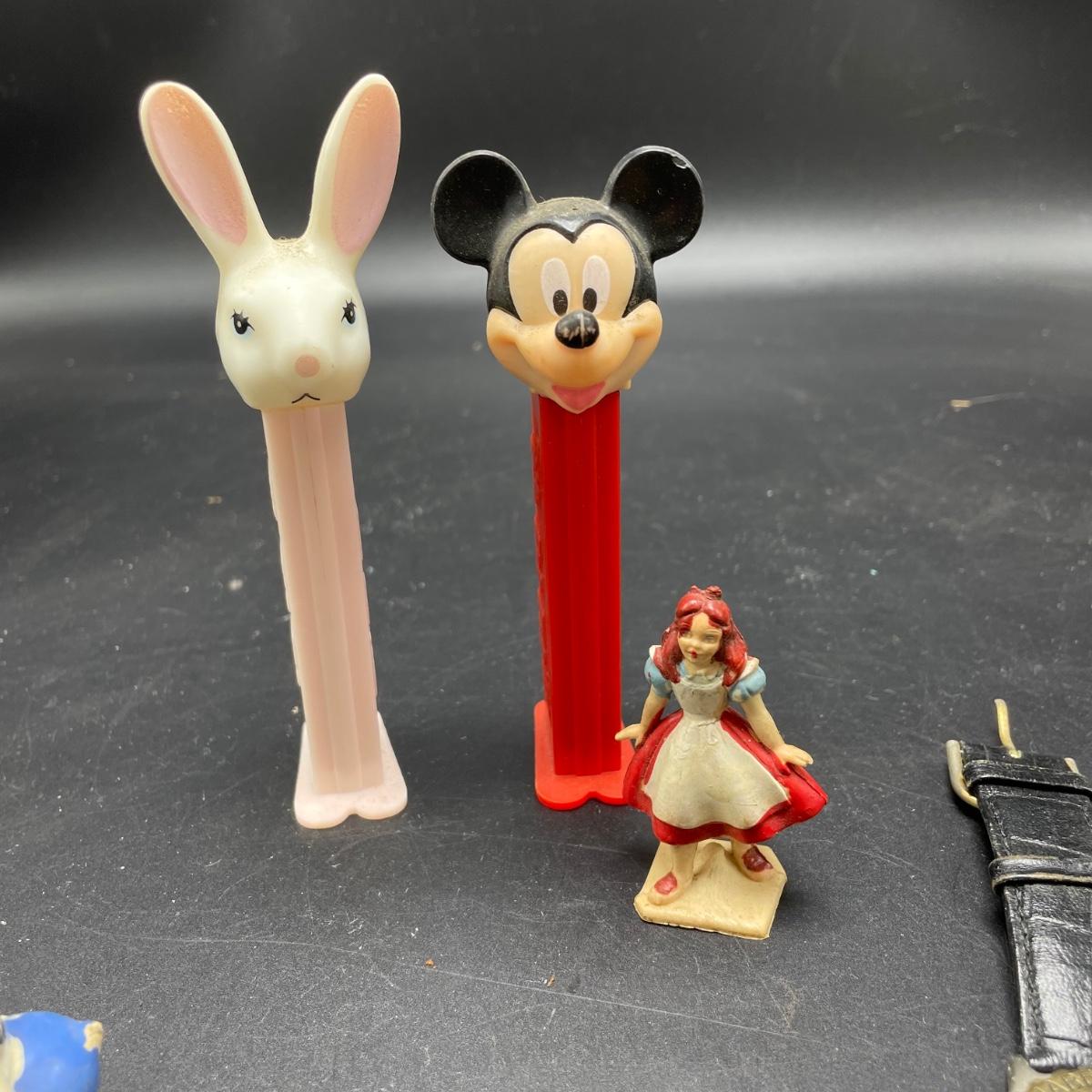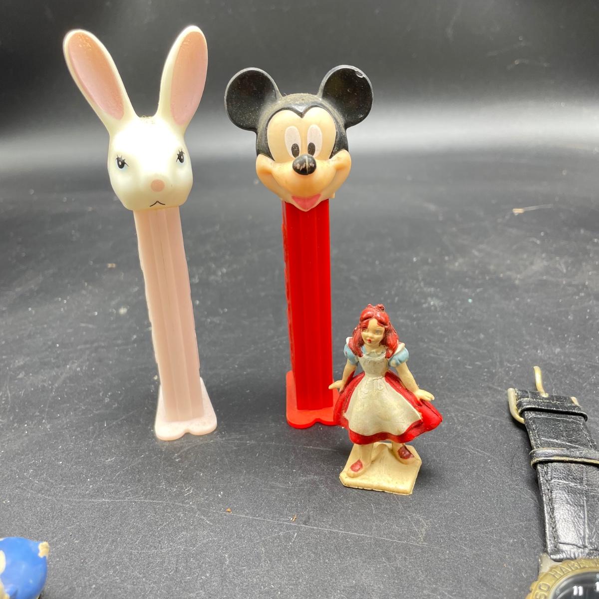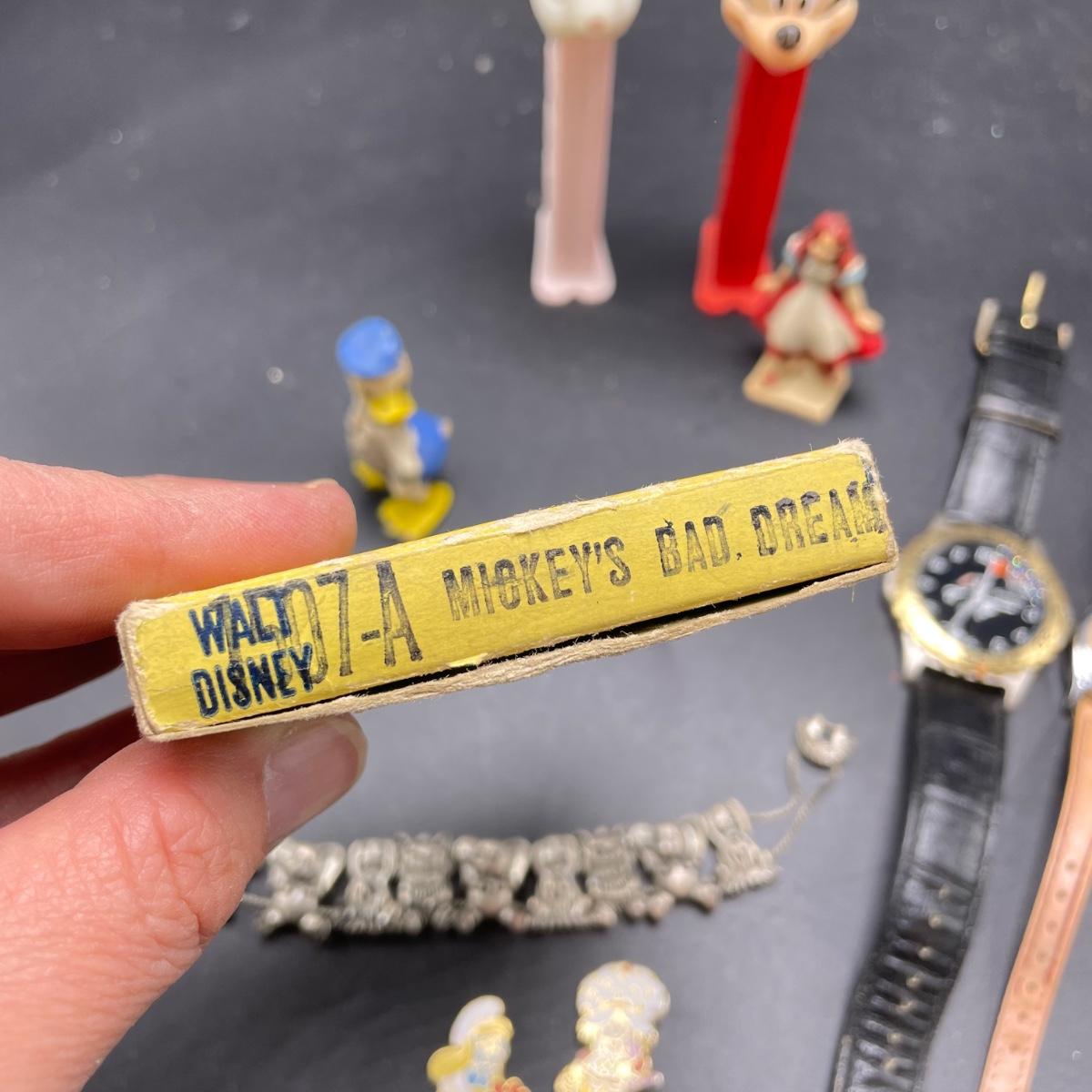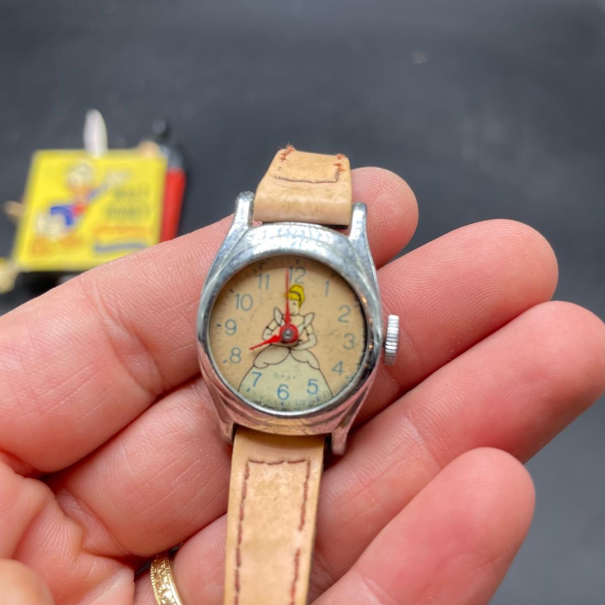 Classic Characters and more. Walt Disney Home Movie Cartoon reel with vintage Donald toy and Mickey Pez Dispenser. Lot features a Bugs Bunny and Cinderella watch, the Cinderella watch is missing it’s glass cover. A Strawberry ShortCake and Smurfette pin with an animal chain bracelet. Lot also includes another vintage character, a bunny Pez Dispenser and a working wind up boat engine. See images. Shipping available.