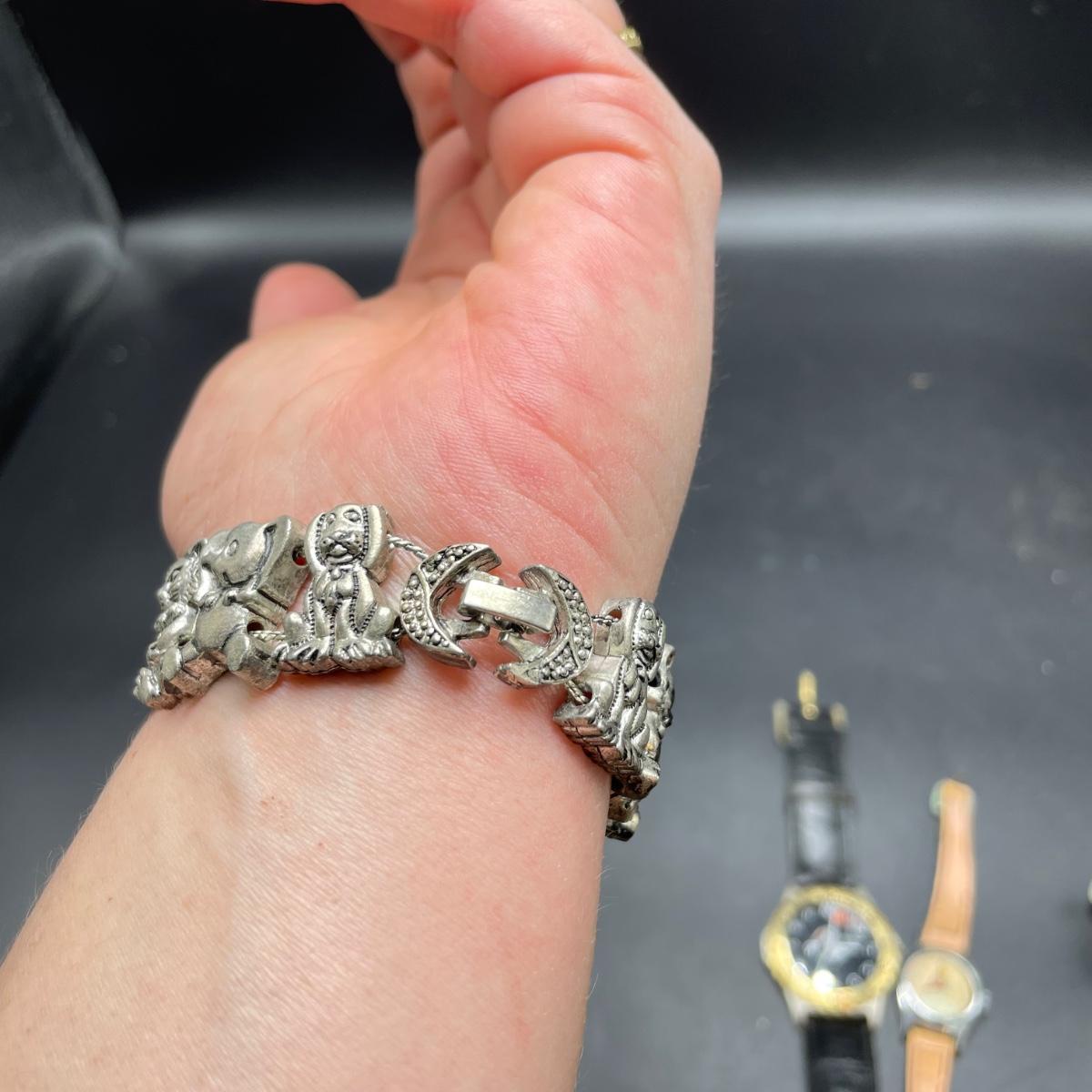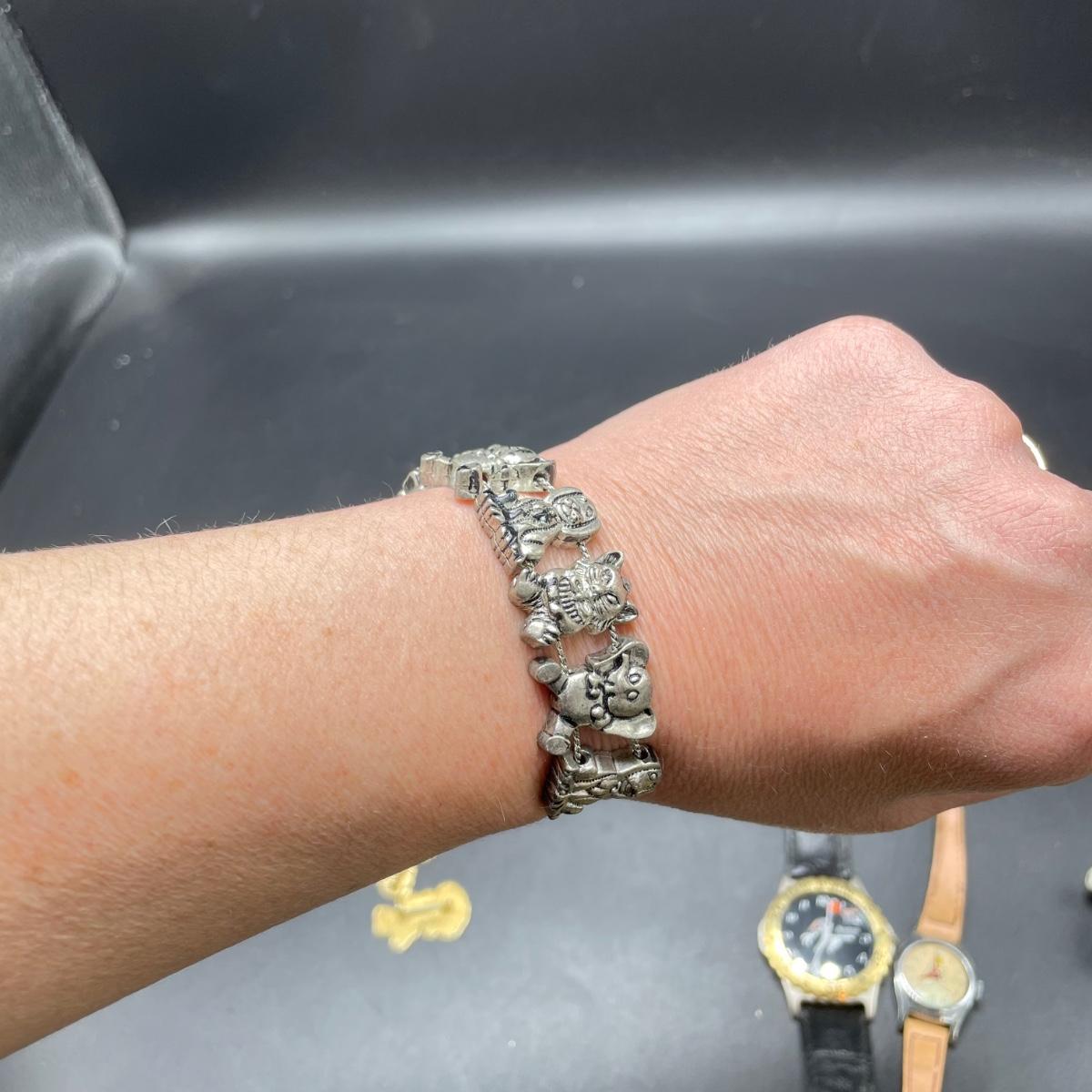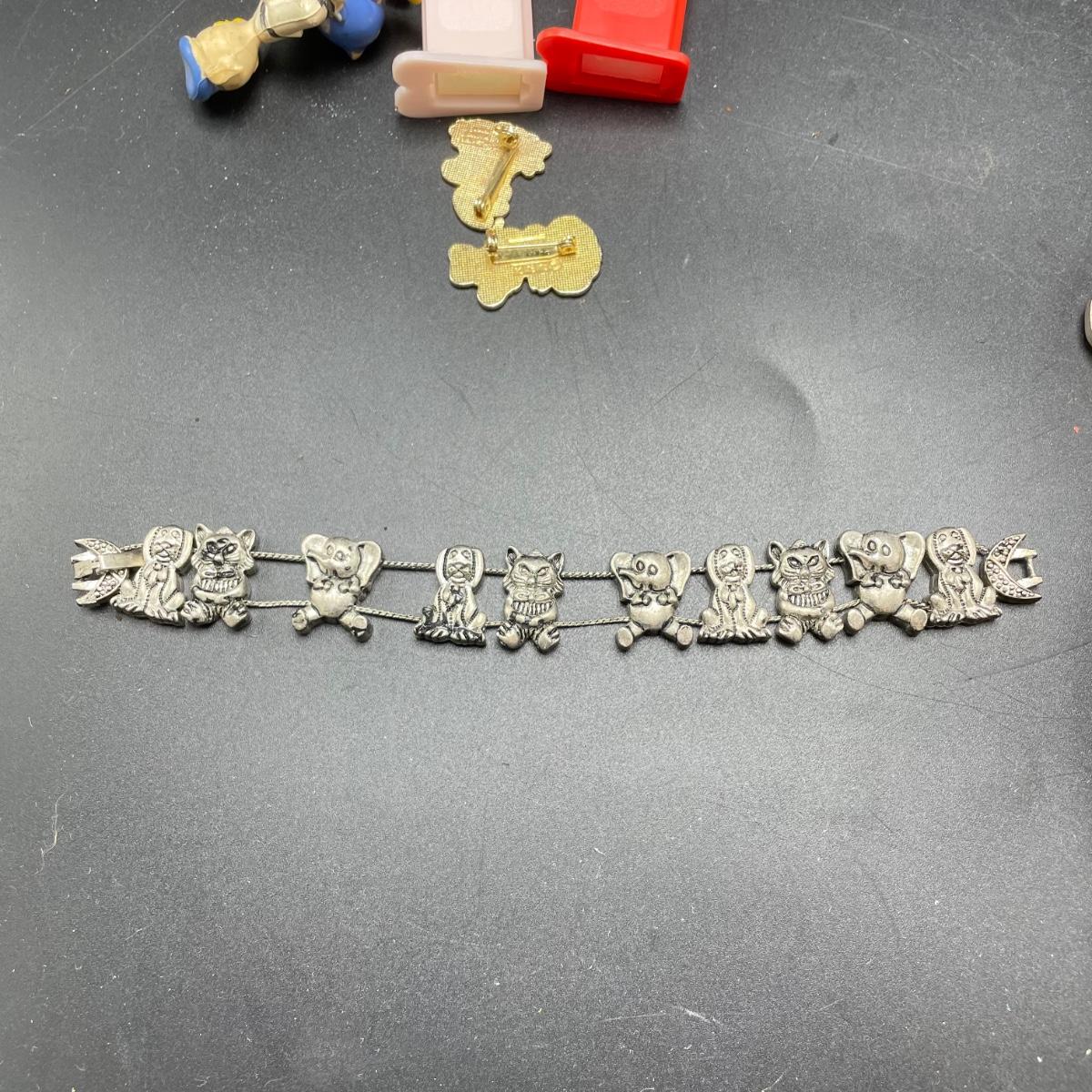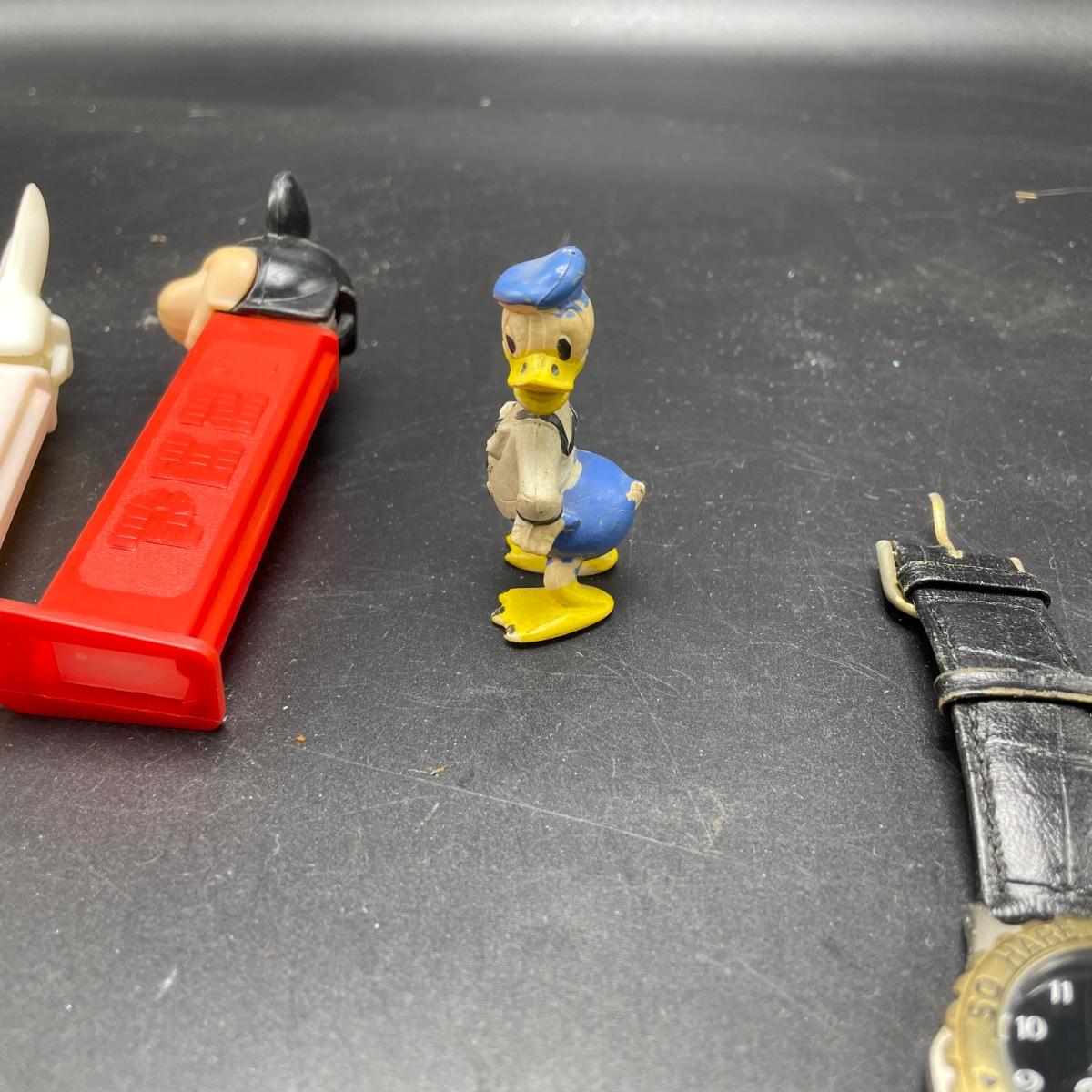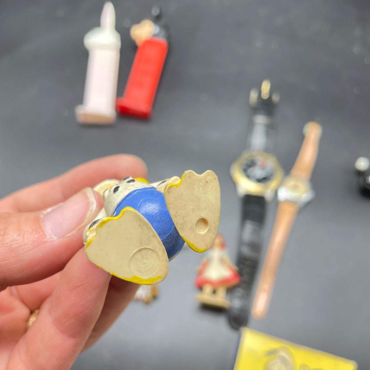 Classic Characters and more. Walt Disney Home Movie Cartoon reel with vintage Donald toy and Mickey Pez Dispenser. Lot features a Bugs Bunny and Cinderella watch, the Cinderella watch is missing it’s glass cover. A Strawberry ShortCake and Smurfette pin with an animal chain bracelet. Lot also includes another vintage character, a bunny Pez Dispenser and a working wind up boat engine. See images. Shipping available.
