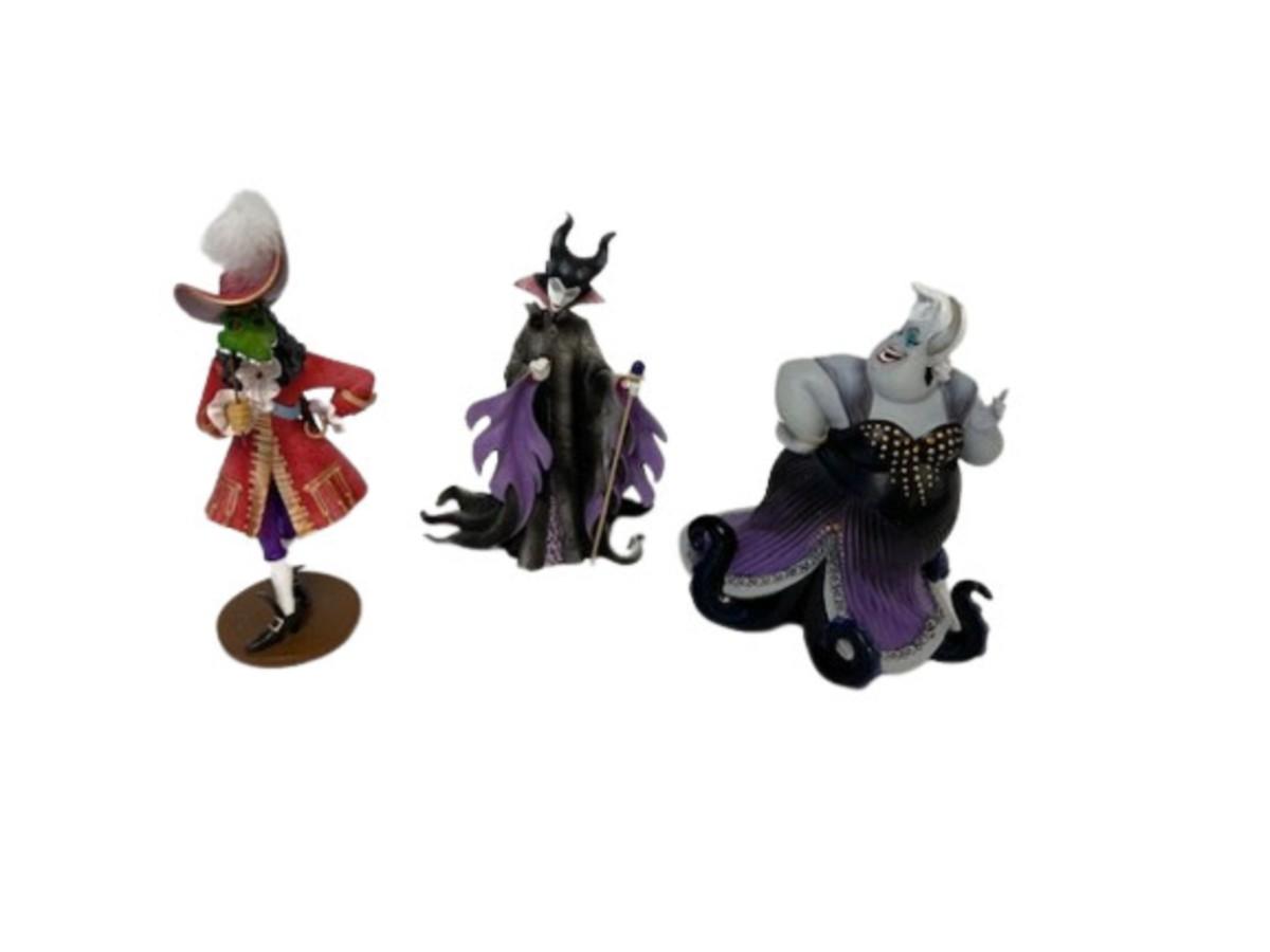 Includes Ursula, Maleficent, and Captain Hook. Total of 3 pieces. In original boxes. Measurement of largest: 8.5"H. [SD]