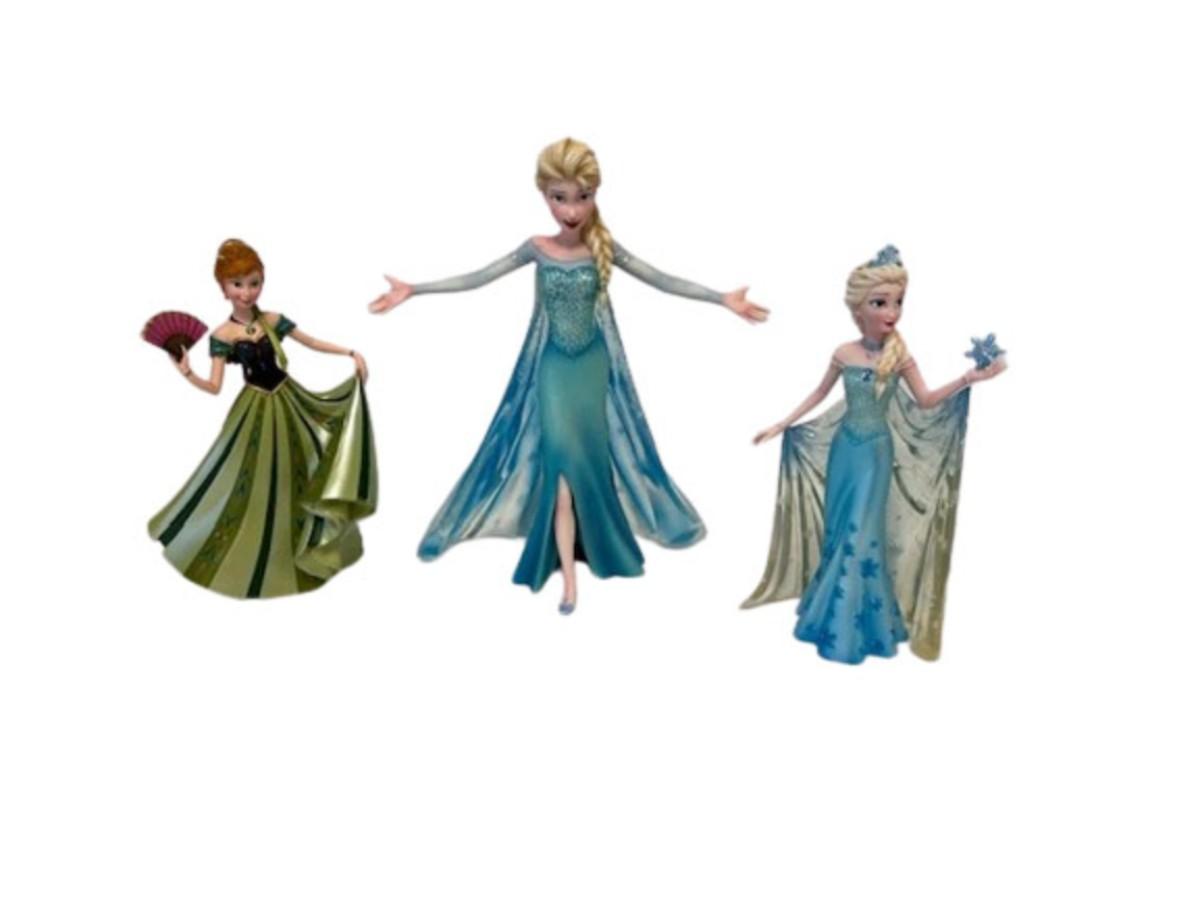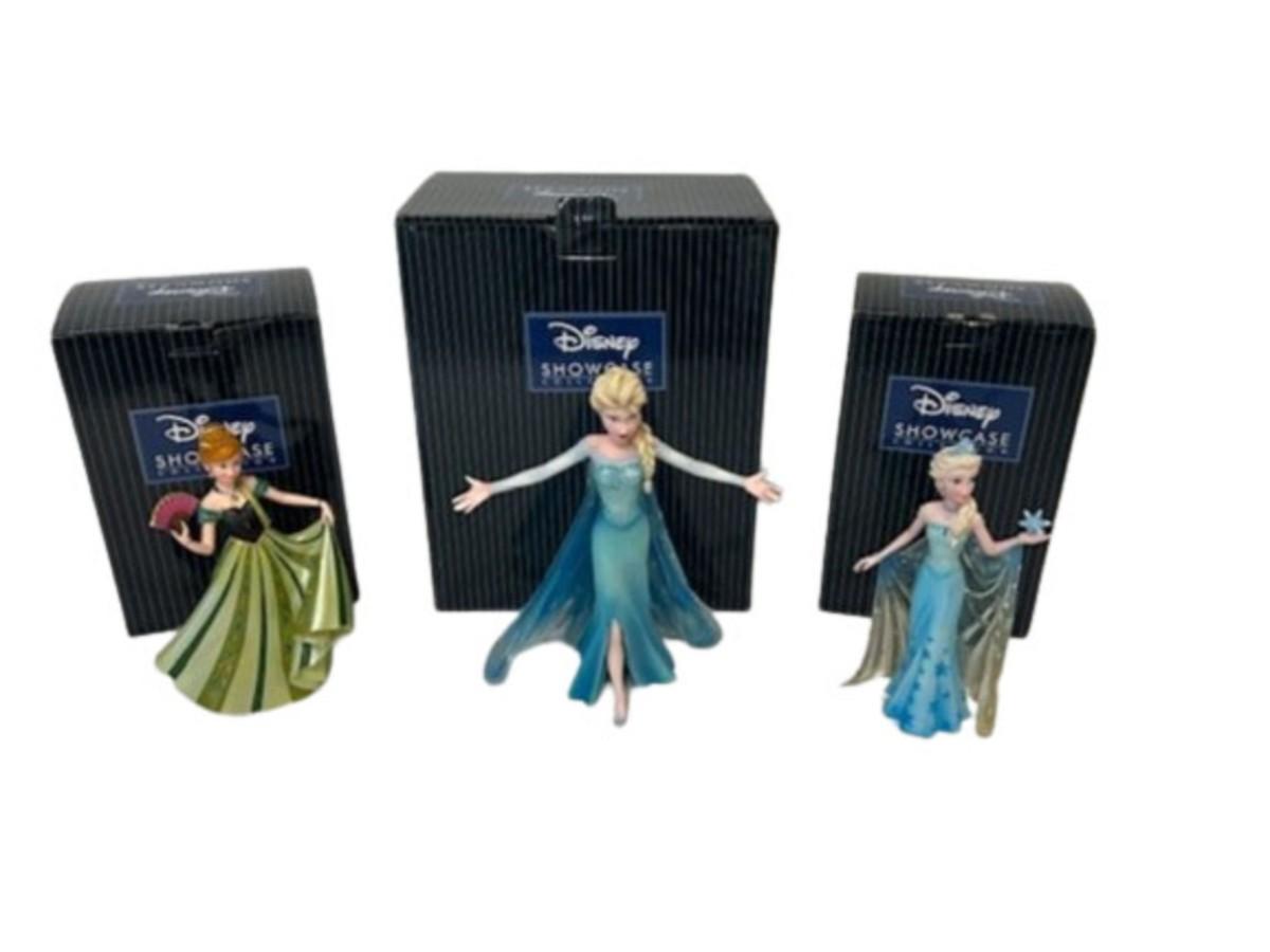 Two are Elsa, and one is Anna. Total of 3 pieces. In original boxes. Measurement of largest: 10"H. [SD]