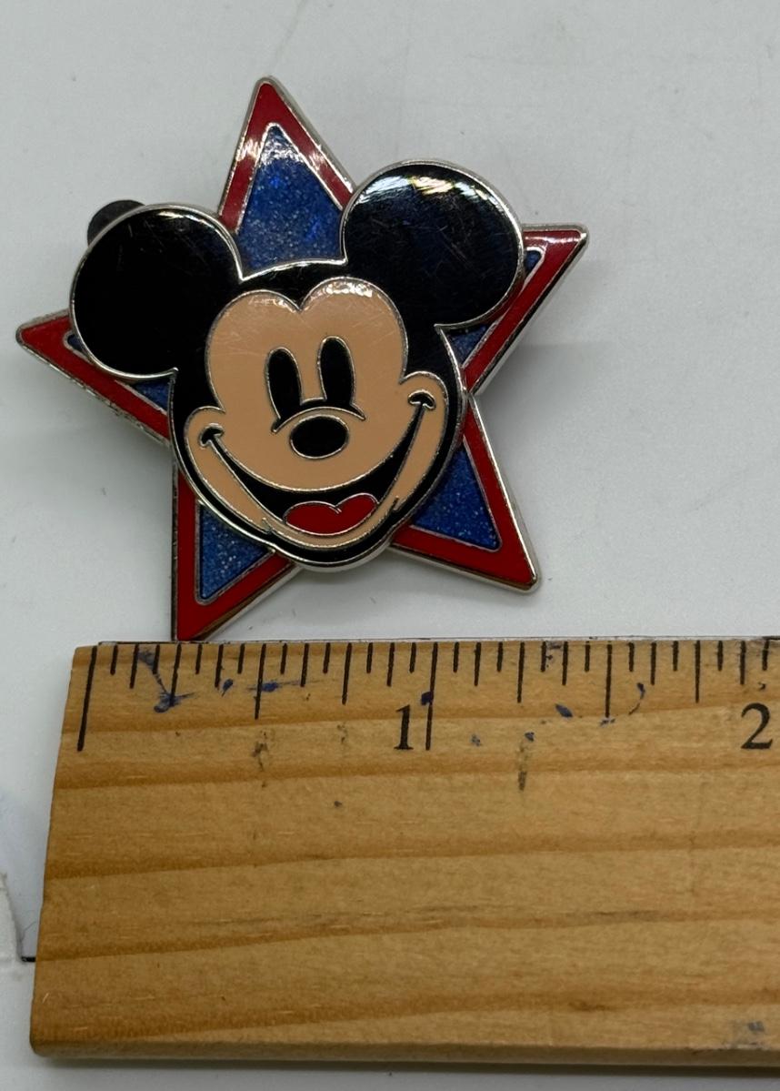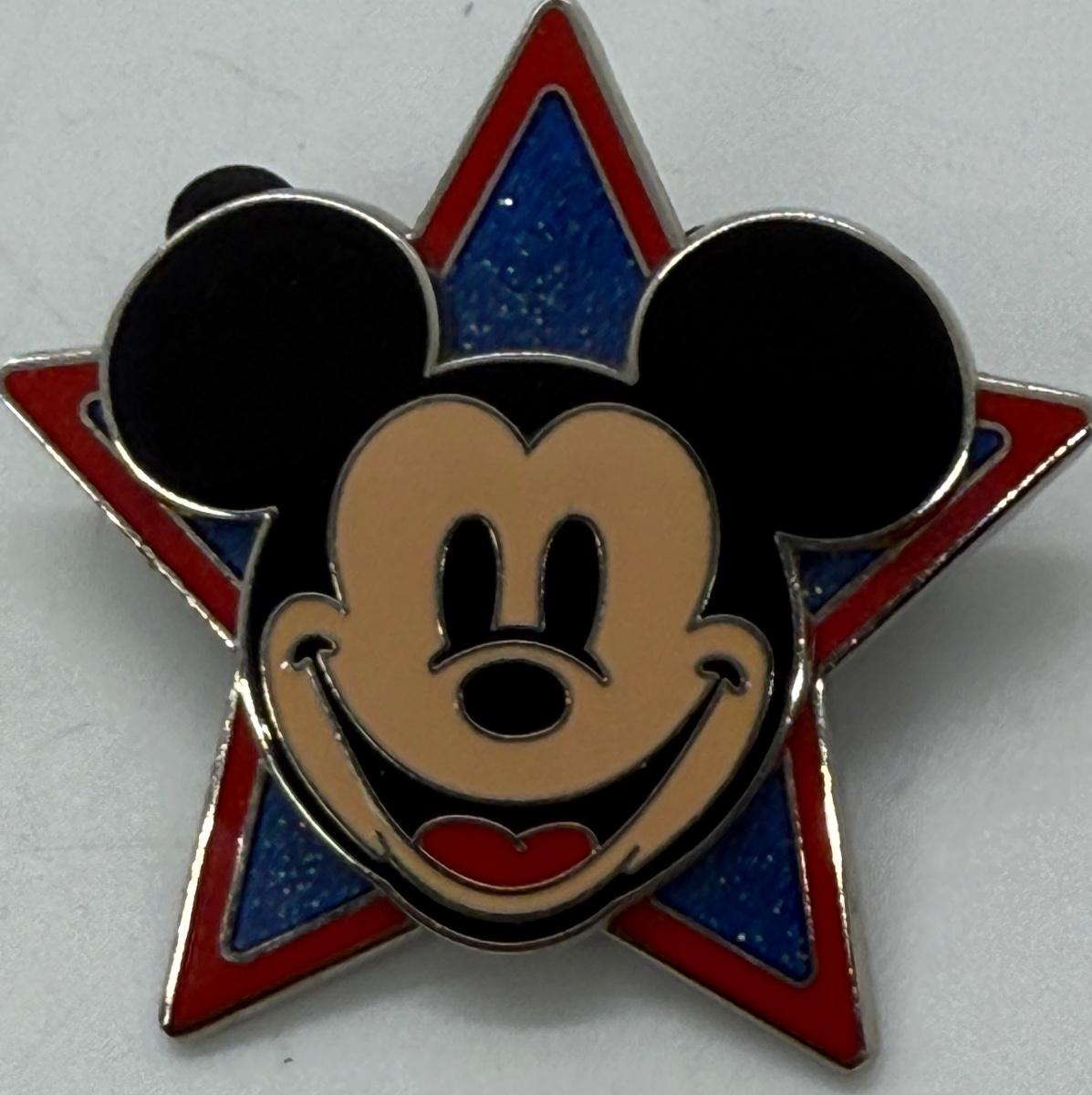 Disney Trading Pin Smiling Mickey Head on Blue Star with Red Border