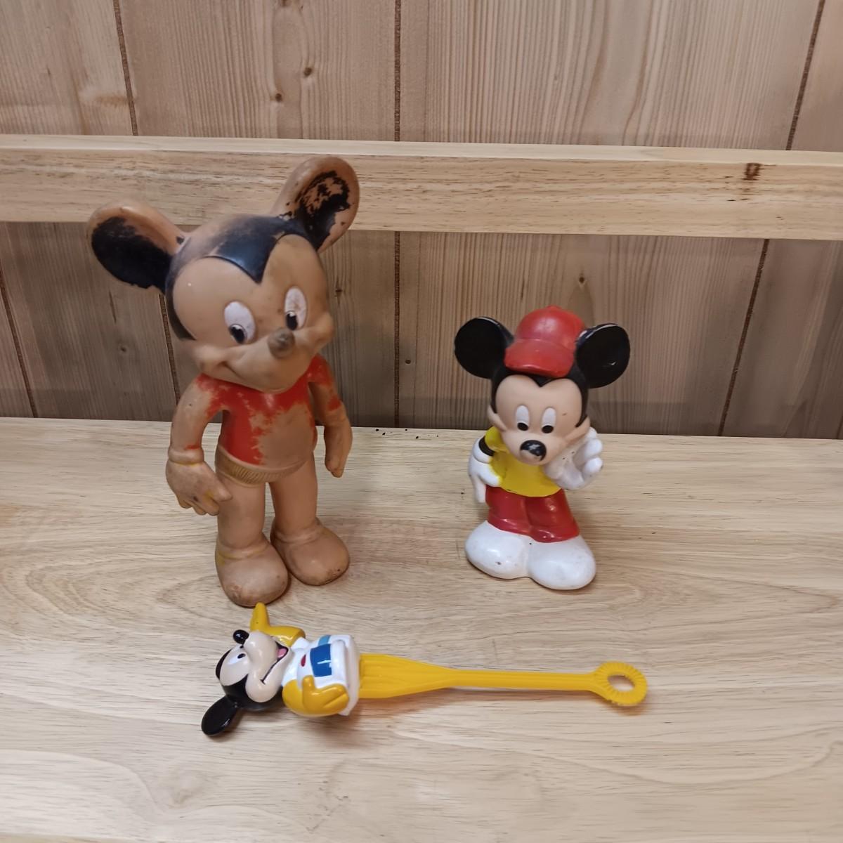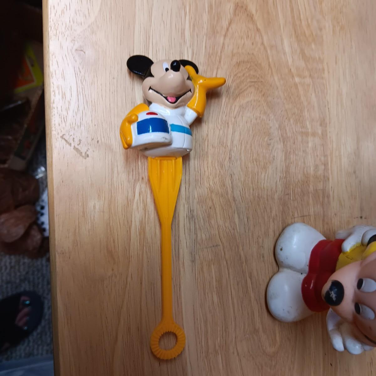 DISNEY VINTAGE MICKEY MOUSE, BUBBLE WAND AND RUBBER MICKEY