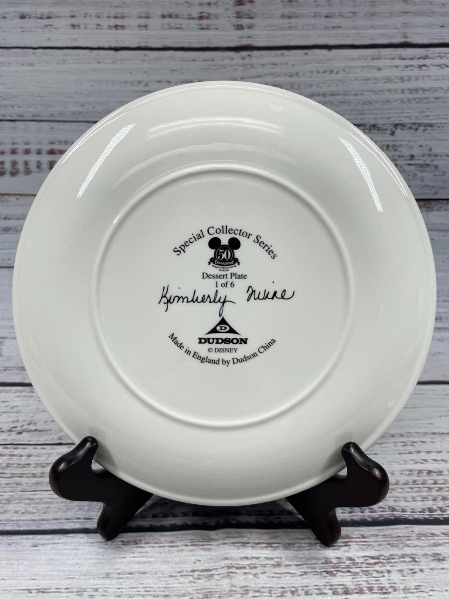 This plate in in amazing condition and comes in it’s original packaging. This item was designed by Kimberly Irvine for Disneyland’s 50th anniversary. There is a sheet of paper inside that contains details about some of the plates she has made. The plate was made in England by Dudson China.