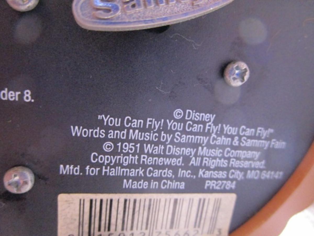 Plays "You Can Fly"; Peter Pan flies when the music is playing, 6" tall x 4-1/2" across